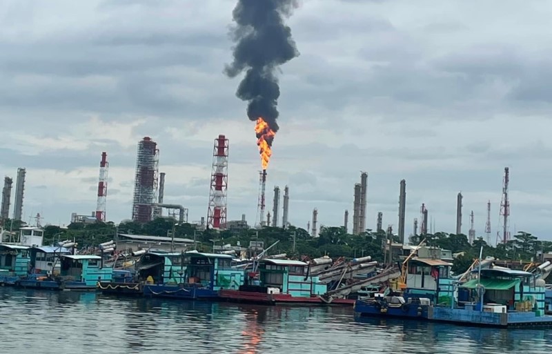 燃燒塔冒黑煙。(記者翻攝)