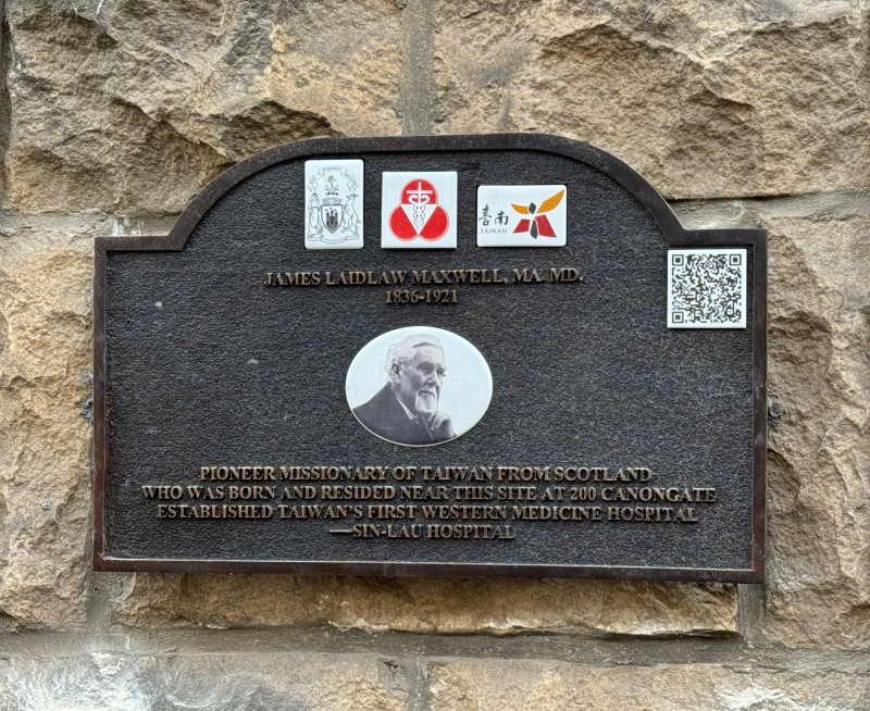 【記者葛志琪/臺南報導】馬雅各醫生(Dr. James Laidlaw Maxwell)對台灣現代化醫療貢獻良多,創立台灣首間現代化西式醫院──新樓醫院,台南市政府近日在其出生地英國愛丁堡掛上紀念碑牌以茲紀念先人的付出。在紀念碑牌上刻有馬雅各醫生對台灣與台南醫療的貢獻,掃描QR-Code則可直接連結至他生平介紹網頁;值得一提的是,這塊碑牌上同時陳列台南市徽、愛丁堡市徽及新樓醫院院徽,象徵著台南跟愛丁堡因馬雅各醫生串起的友好情誼。