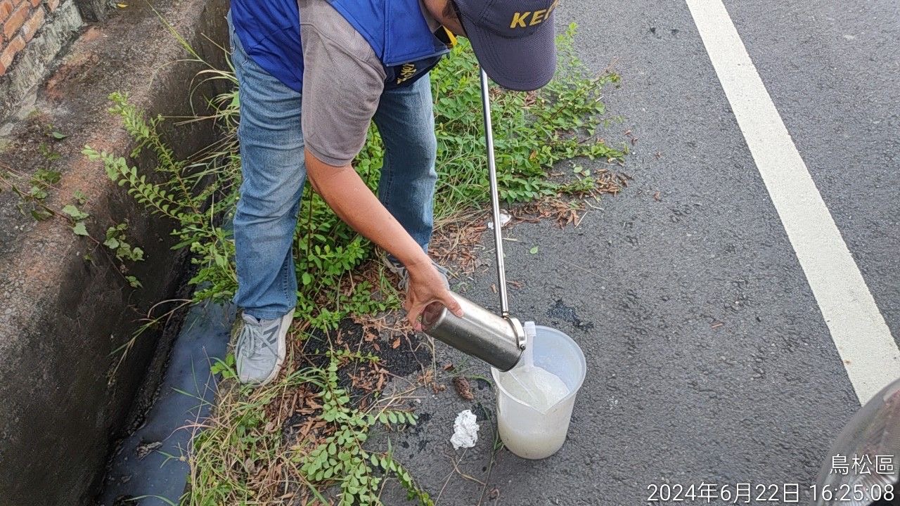 今(23)日查獲洗衣工廠排放廢水情形。(記者翻攝)