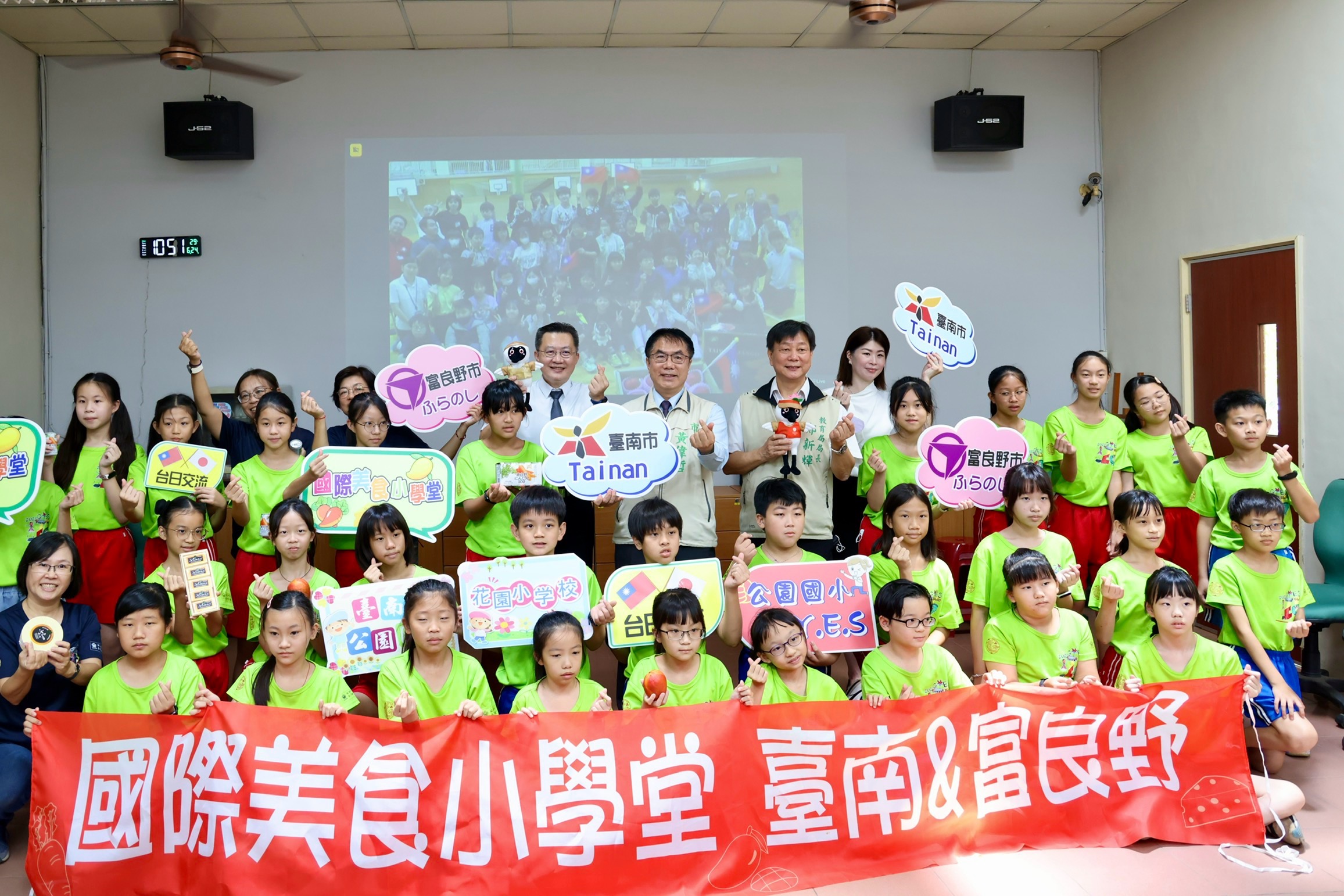 市長黃偉哲也特別到校參與交流,他感謝富良野市渋谷正文議長促成,讓雙方學校以在地物產交換與線上視訊課程的混成交流方式,深入了解彼此城市的文化特色,同時黃偉哲也向日本學童行銷台南芒果,邀請他們來台參與台南400相關活動。