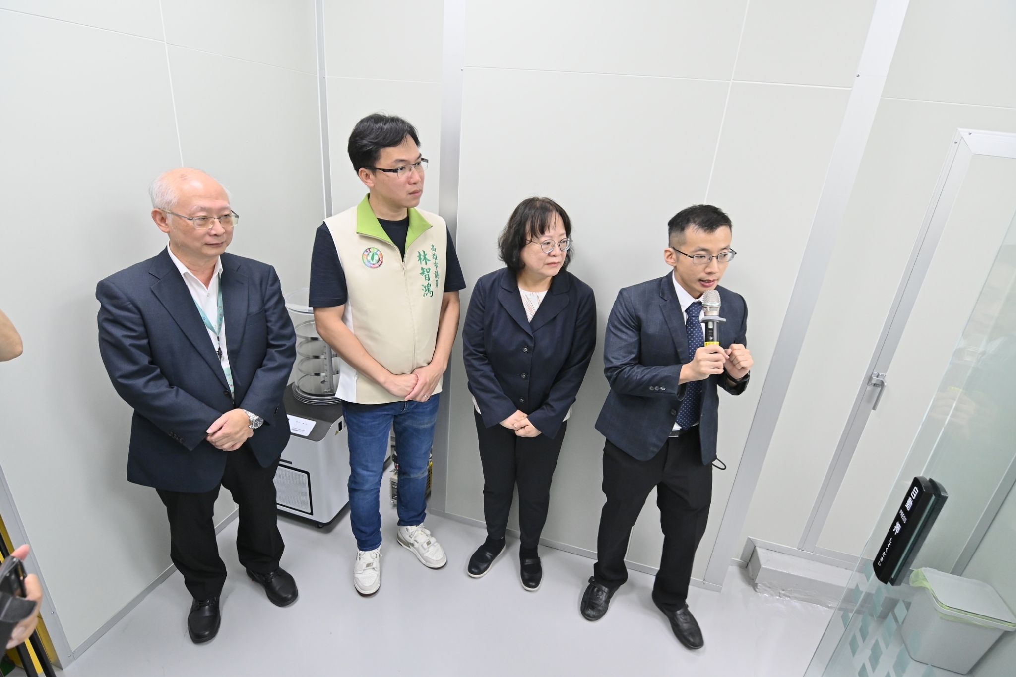參觀「生物氚分析實驗室」合照:(由左至右)衛生局黃志中局長、林智鴻議員、食藥署南區管理中心蔡佳芬副主任、衛生局檢驗科林學慶科長。(高雄市政府衛生局提供)
