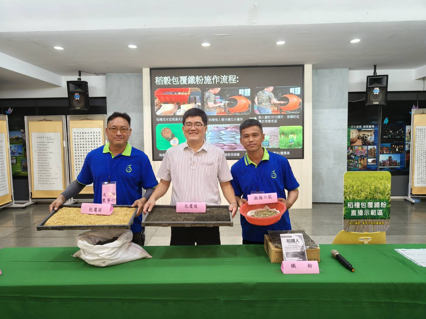 農業局長李建裕表示,農友關心稻穀包覆鐵粉後發芽率和稻穀收成率有無影響,這些年的田間實測結果,整體發芽率約95%以上,稻子收成率約9成,相較稻穀泡農藥方法為佳。另對稻穀包覆鐵粉播種稻田裡,是否會有重金屬殘留的疑慮,這點請大家放心,鐵是農作物生長所需的微量元素,這些使用的鐵粉皆經過重金屬檢測未檢出。