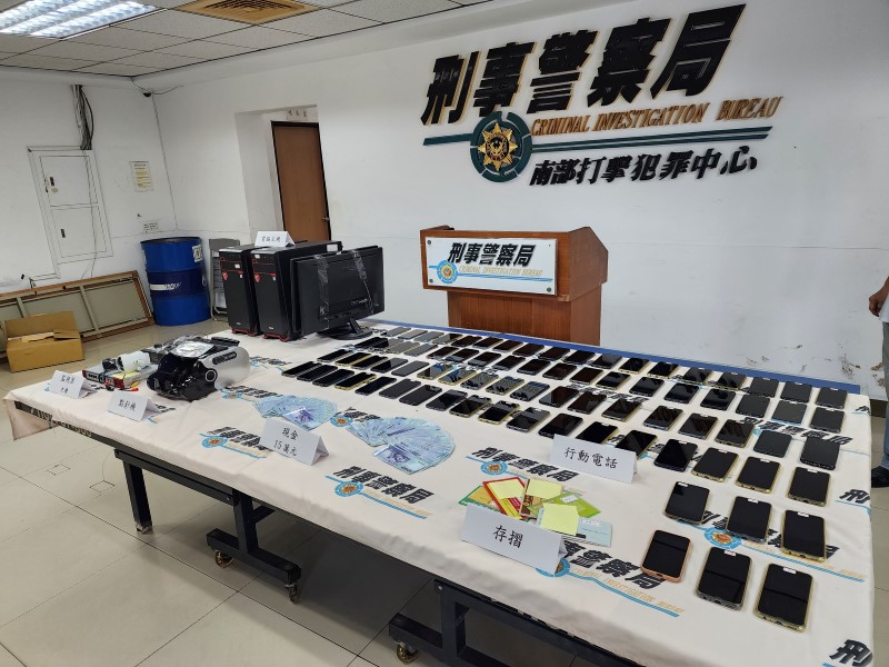查獲現金新臺幣15萬5,000元、電腦主機6台、手機86支、存摺11本、點鈔機1台、筆電、薪資袋1包、監視器1組等證物。(刑事警察局南部打擊犯罪中心提供)
