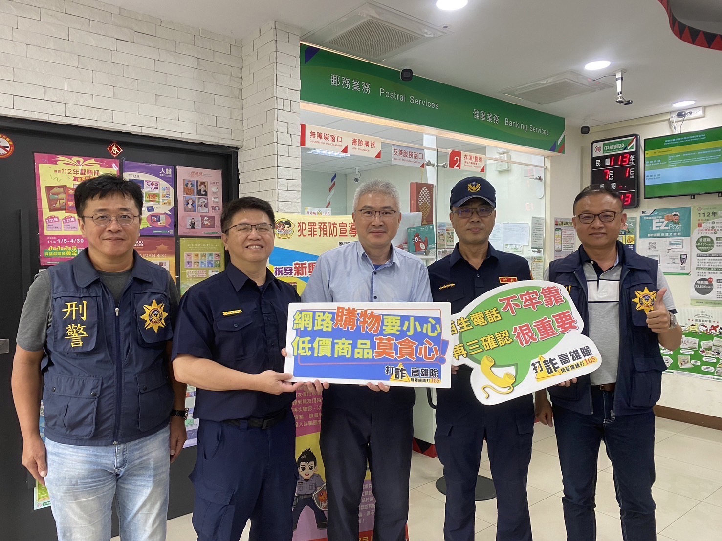 【記者黃帷菕/高雄報導】高雄市那瑪夏區一名黃姓男子,於6月13日上午到那瑪夏(區)郵局臨櫃欲匯款新臺幣30萬元,劉姓行員立即關懷提問,見該男子對該筆款項用途無法說明清楚,疑似遭詐騙,立即通報轄區達卡努瓦派出所員警到場了解,所幸在行員機警通報警方處理,即時攔阻倖免遭詐。昨(1)日由副分局長朱和貴率員前往那瑪夏郵局頒贈感謝狀及禮品。