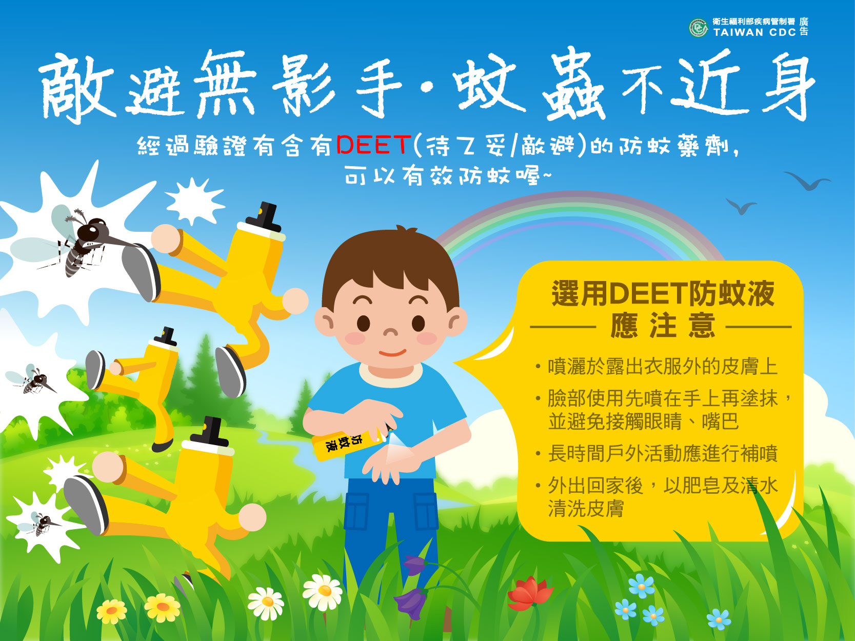 衛生局提醒,暑假來臨,前往東南亞等登革熱流行地區旅遊丶探親,務必做好防蚊措施,穿著淺色長袖衣褲、於皮膚裸露處塗抹政府核准含DEET或Picaridin之防蚊液,返國後兩週內如出現發燒、頭痛、後眼窩痛、肌肉關節痛、出疹等登革熱疑似症狀,務必儘速前往高雄市登革熱整合式醫療合約院所( https://gov.tw/7Z9),尤其是自登革熱高流行風險國家入境的旅客,應主動告知醫師TOCC(旅遊史、職業史、接觸史、群聚史),也請醫療院所提高警覺,加強通報,並善用登革熱NS1快篩試劑輔助診斷和及早通報,以利衛生單位適時採取相關防疫工作。