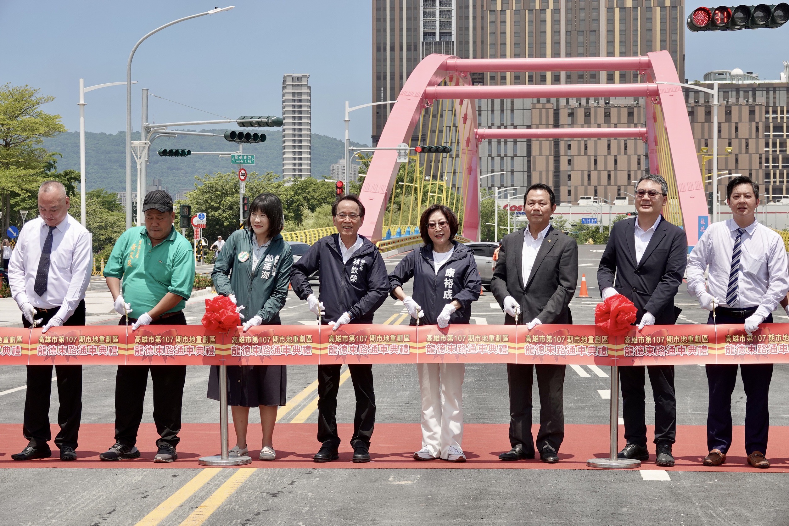 被視為是輕軌成圓最關鍵的配套優化措施,龍德新路繼2021年7月完成拓寬,龍德橋於今年1月跟隨輕軌開放通行,如今配合107期市地重劃新闢長約350公尺、寬26公尺的「龍德東路」通車,將串聯博愛、自由、民族等幹道,完善愛河、大順商圈路網。