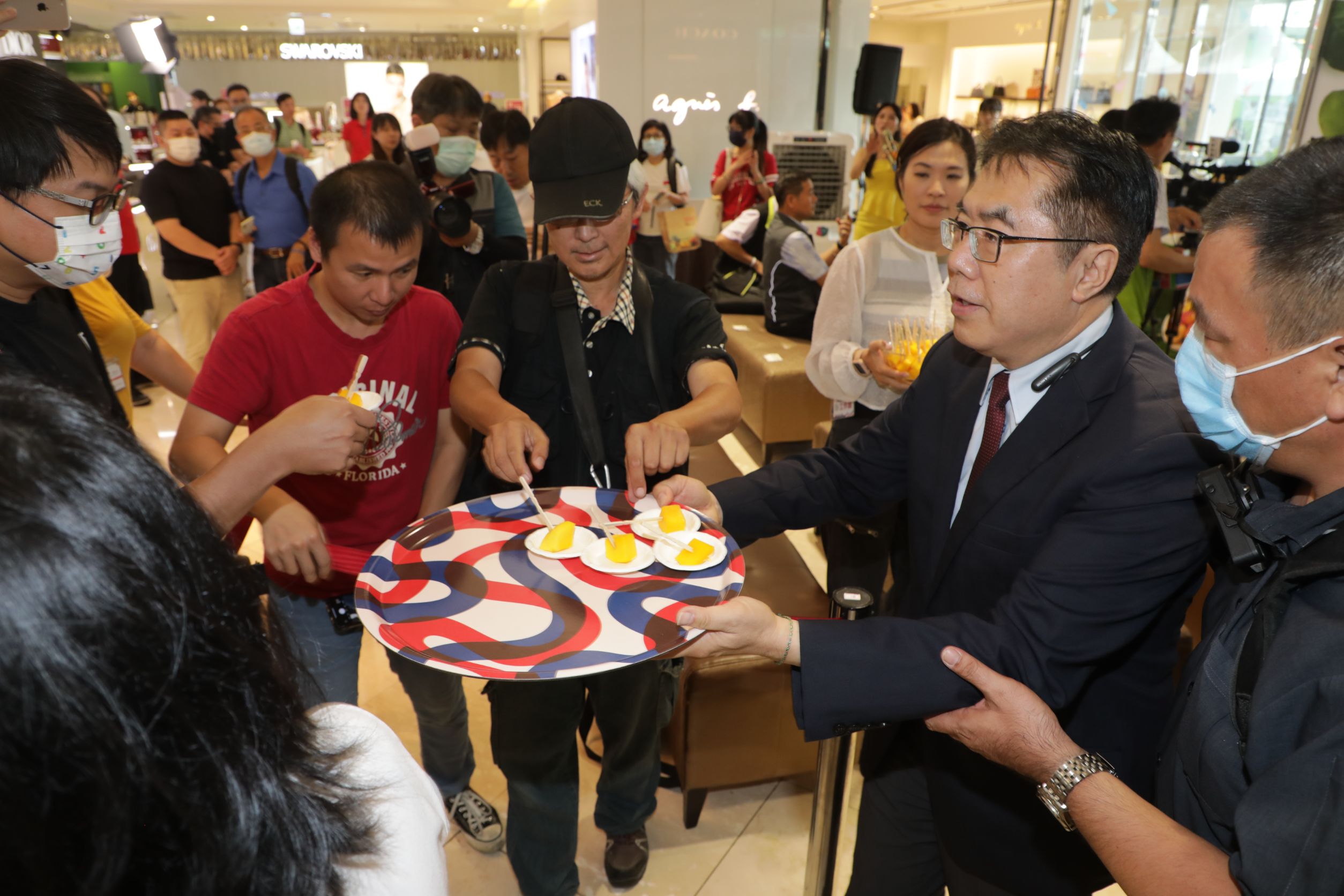 黃偉哲說,今年臺南推出芒果寶盒,將愛文、金煌、西施、貴妃、烏香等各種品種的芒果裝在一個禮盒,滿足大家想要各種滋味一次滿足的願望,保證大家喜歡,歡迎來桃園大遠百品嘗選購最高品質的臺南芒果。