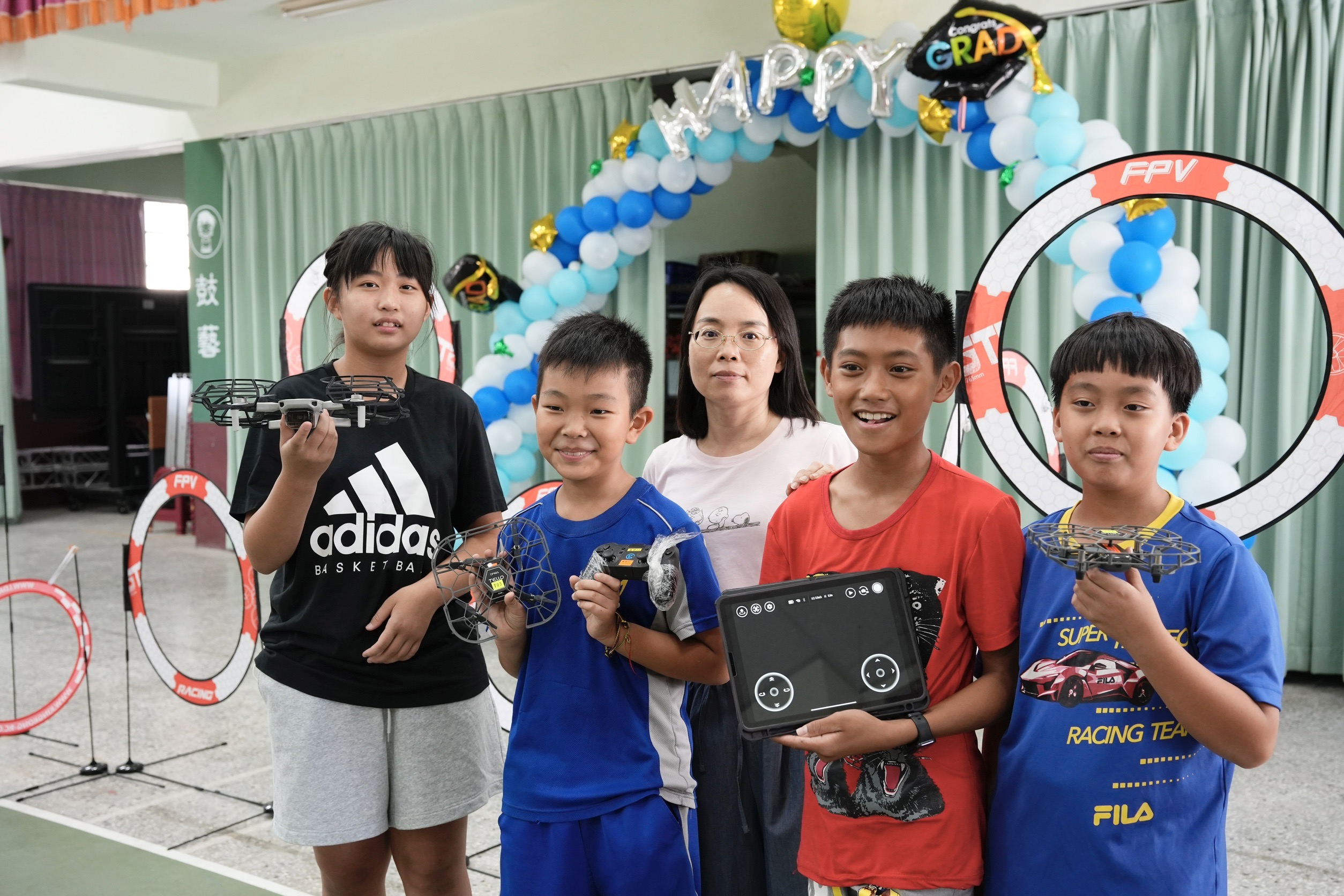 新興國小楊麗美校長表示:學校有無人機專業人才,侯人俊主任是高雄市數一數二有無人機證照的優質師資,也購置5台以上的無人機供學生學習與實作,但苦無練習場地,還好與前峰國小互補一拍即合,共創佳績。