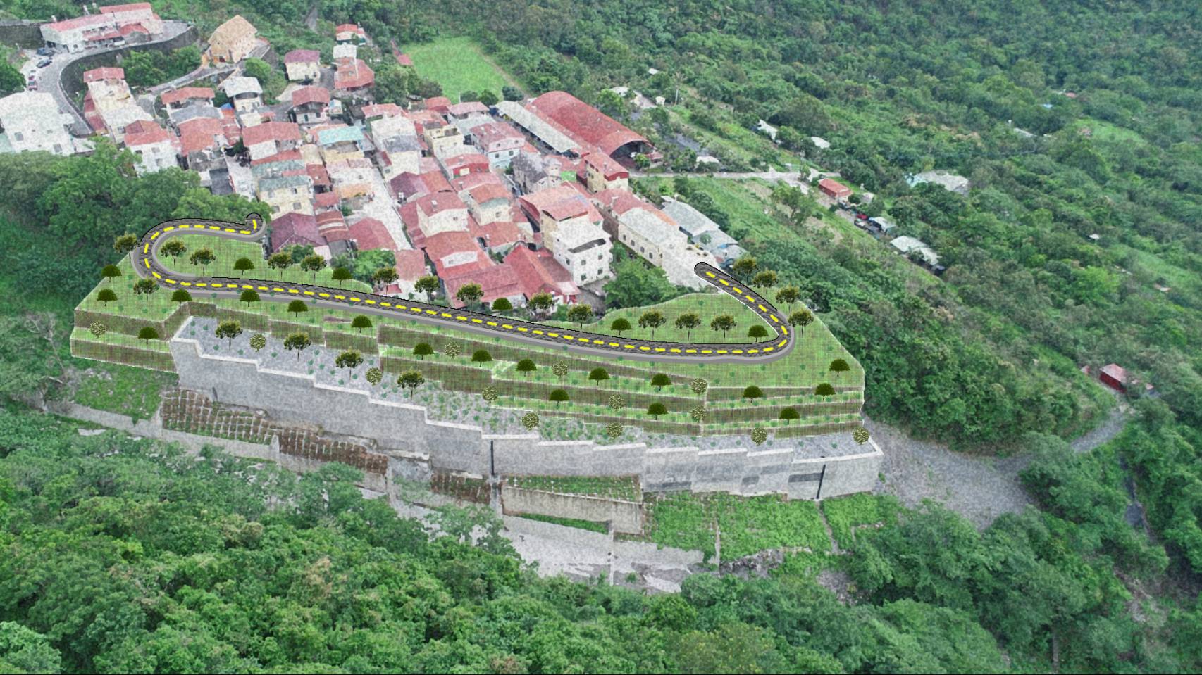 本期「茂林區萬山部落邊坡保護工程」完工模擬圖。(高雄市政府水利局提供)