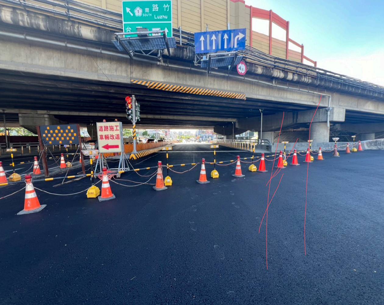 萬代橋路面改善工程進行。(臺南市政府工務局提供)