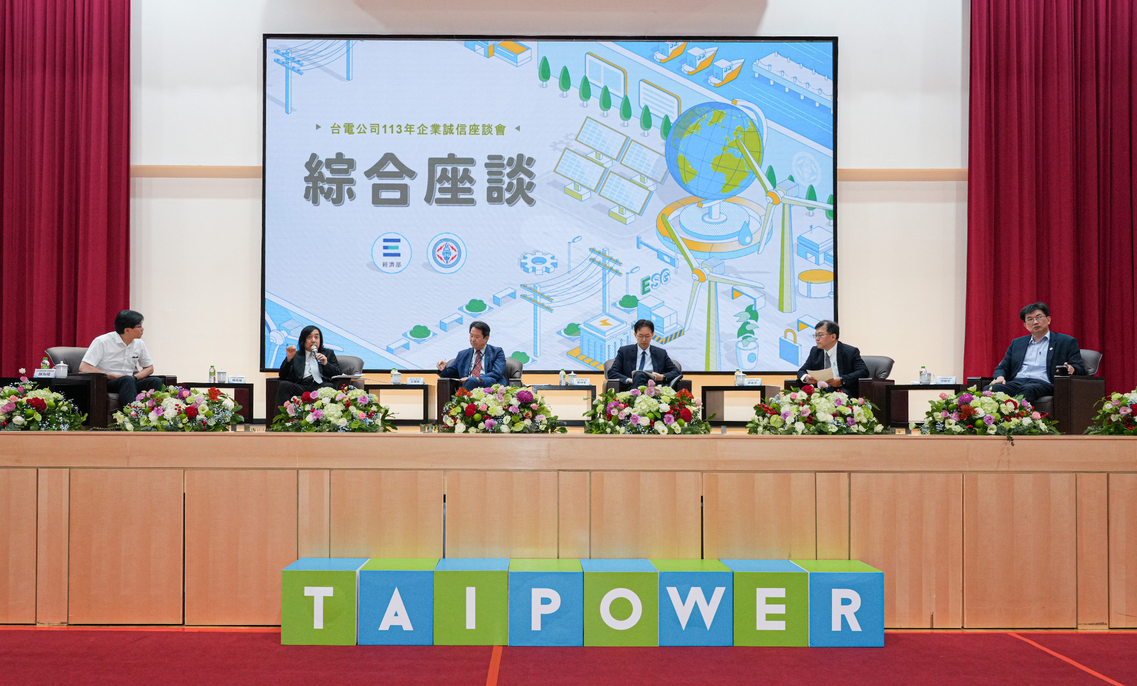 台電今於新北板橋北南區處舉辦「電力ESG 綠能展新機」企業誠信座談會,現場由台電董事長曾文生主持開場,經濟部部長郭智輝、法務部部長鄭銘謙及綠能產業發展相關單位、企業代表貴賓共同與會。