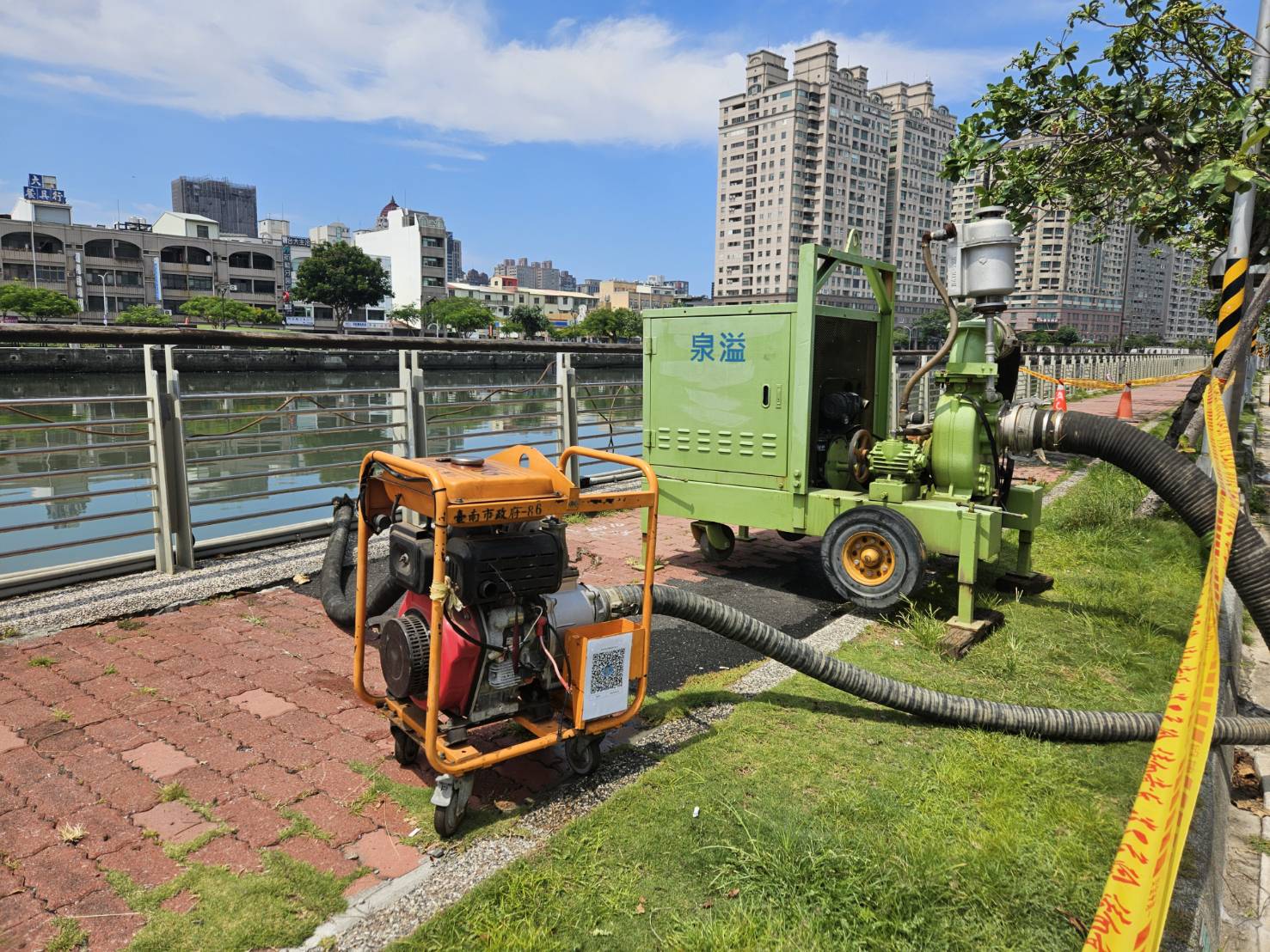 佈設抽水機避免發生路面積水災情。(台南市政府水利局提供)
