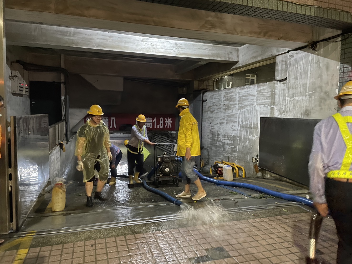 另昨日晚間,除了三民區一處大樓地下室淹水,尚有包括三民區山東街、大福街、苓雅區興中二路等配電室淹水,本處皆對外請求支援,加派抽水機至現場進行抽水;今日上午國軍也在大福街安排5台抽水機、德山街2台抽水機投入救災行列,目前持續抽水中。