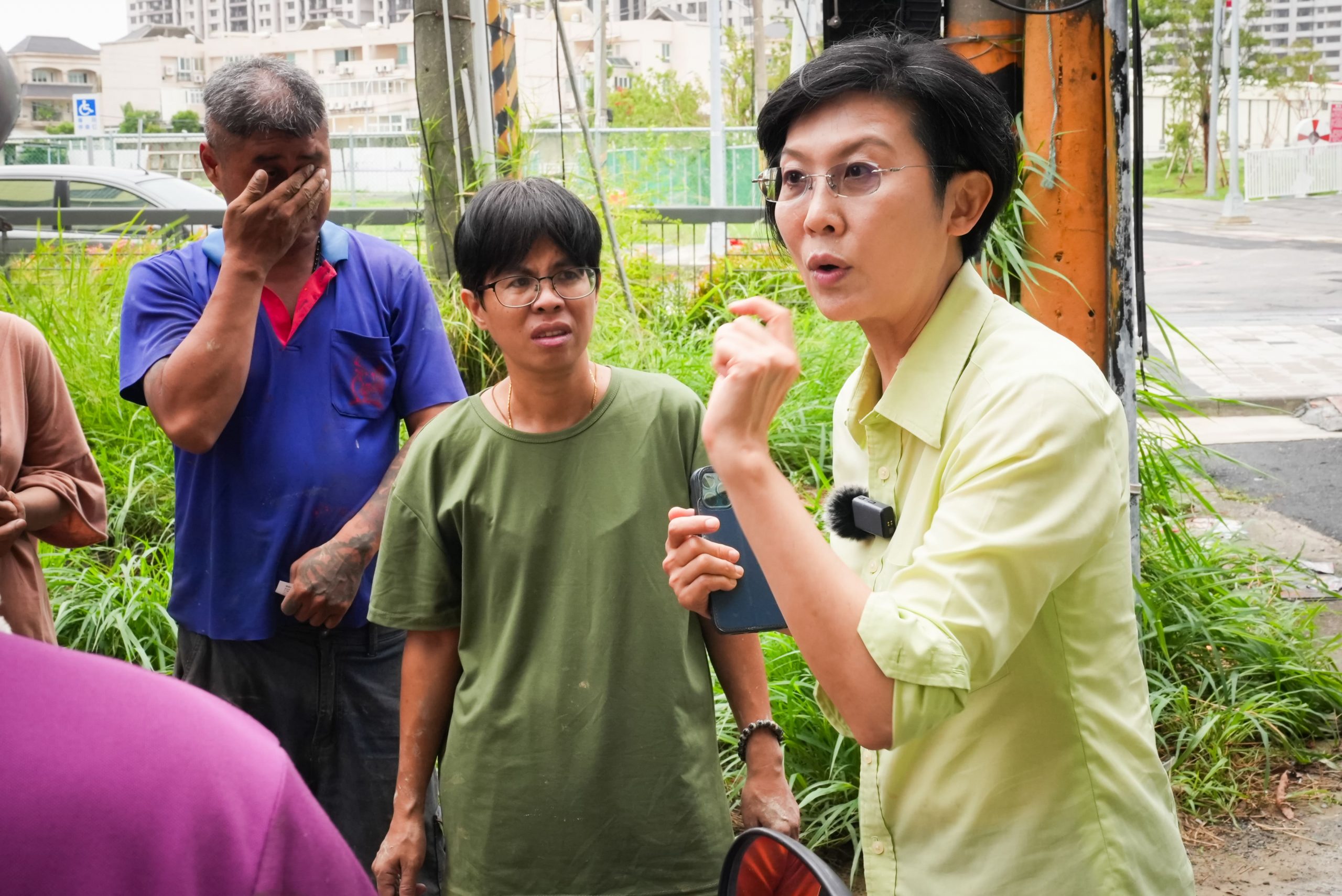 立委林岱樺當場聯絡軍方協助清除災後殘留物,也在現場詳細了解受災戶的生活狀況及其所需,她得知仁武區社會課僅提供七佰元的住宿補助後,立即指示服務團隊協助處理剩餘費用及急需的換洗衣物,確保居民的基本生活需求,包括今晚的旅館安置費用及協助採購簡單衣物和交通服務。