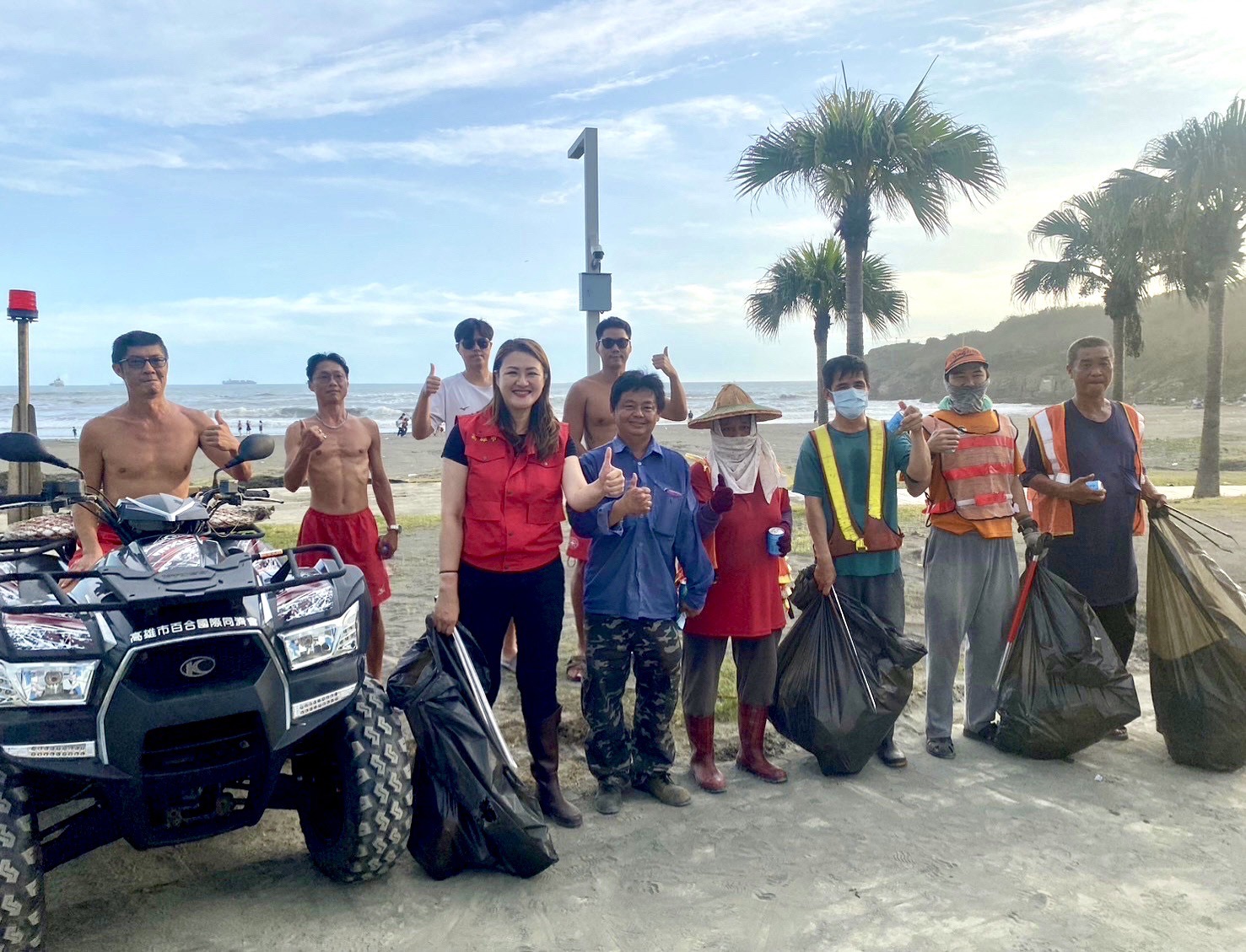 高閔琳進一步指出,為保障市民及遊客安全,目前崗山之眼、金獅湖蝴蝶園及旗津貝殼館上周末暫停開放,刻正全力動員,進行災後清理環境復原工作並全面性盤整各景區所有設施;務必於本週二(07/30)前,在確保景區安全無虞的前提下重新開放。原定7月27、28日舉行的「旗津風箏節暨氣墊水樂園活動」順延至本週8月3、4日舉行。而本次颱風凱米不僅造成景區多處樹木植栽倒塌斷裂,更帶來大量海洋廢棄物,未來一週內亦將持續有大量海廢陸續被打上旗津沙灘;高閔琳表示,觀光局已加派出動清潔人力及沙灘車等大型機具,全面加速景區環境整理與沙灘海廢清運,同時呼籲市民、遊客近日不要前往沙灘踏浪戲水,避免誤踩漂流木斷枝或海洋廢棄物造成受傷或發生危險。