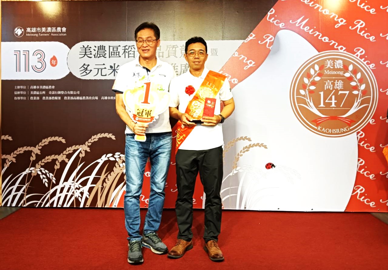感謝市府農業局每公頃10,000元契作獎勵的挹注、農業部水稻保險的推動,讓農友獲得實質生產收益與保障,更願意加入契作的行列,而每年舉辦的稻米品質競賽,就是美濃高雄147米的菁英之爭,良性競爭為產業帶動進步。