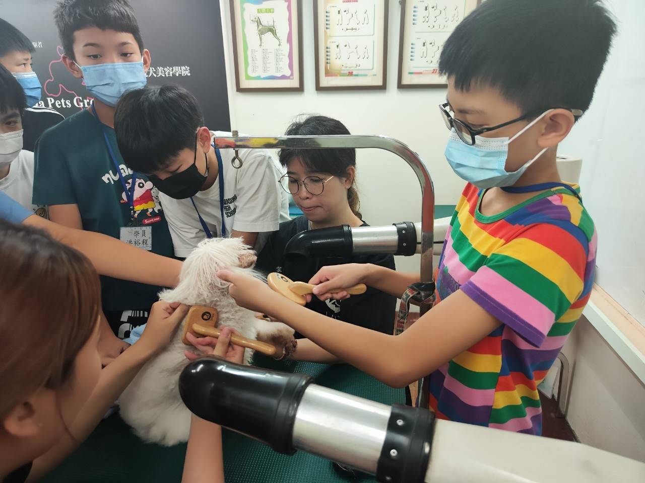 【記者李麗華/高雄報導】受到少子化、人際關係疏離及感情寄託等因素影響,飼養寵物的人口越來越多,也助長了寵物產業發展,寵物相關科系也成了高中職及大學熱門科系。高雄市政府少年警察隊及少年輔導委員會於8月5日至8月7日舉辦「少年帝大寵毛孩-寵物美容體驗」團輔活動,帶領少年前往三民區帝大寵物美容學院,體驗當下熱門的寵物美容產業。