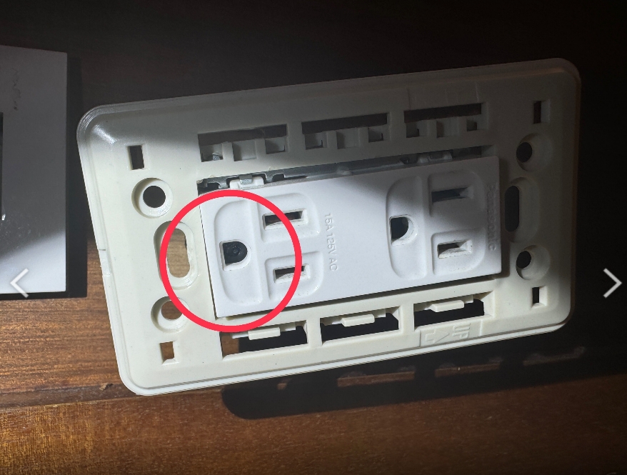 旅館房間內插座有竊錄設備。(高雄市左營警分局提供)