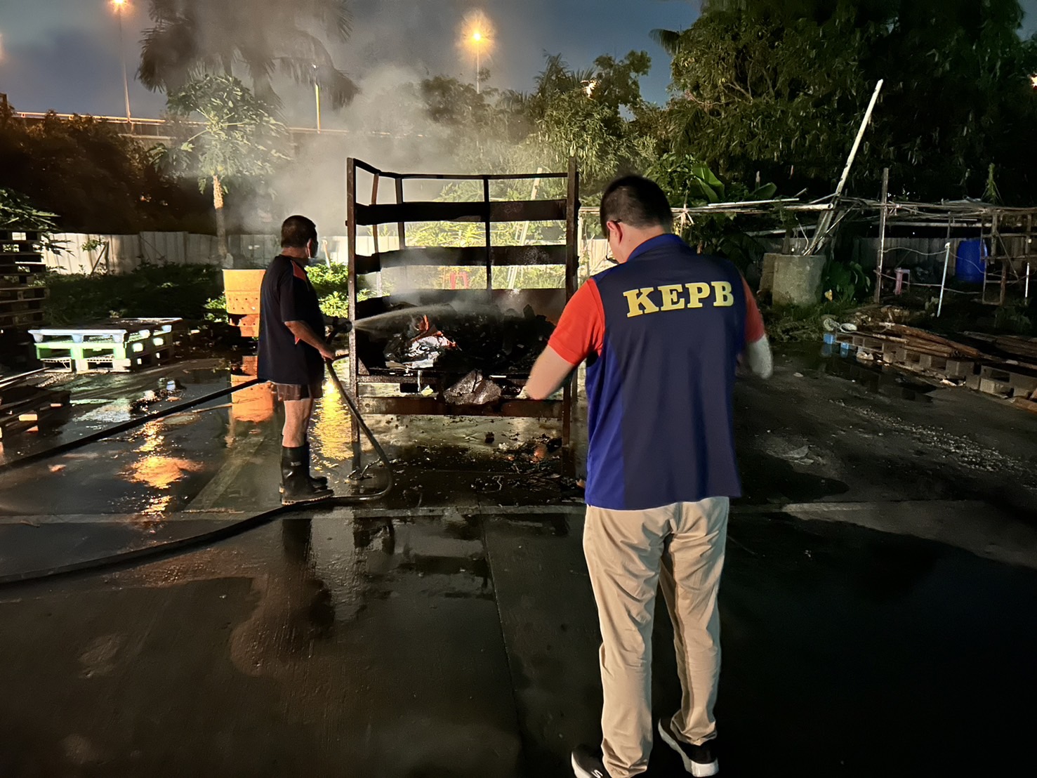 【記者林偉呈/高雄報導】環保局昨(14)日夜間22時起連續接獲多起民眾陳情燃燒異味,影響範圍涵蓋大社及楠梓區等,經派員查察,於23點39分查獲大社區一處私人停車場內露天燃燒廢棄物情事,除將依違反空氣污染防制法32條規定,裁處10萬至500萬元罰鍰外,違法處理廢棄物部分將移送法辦。