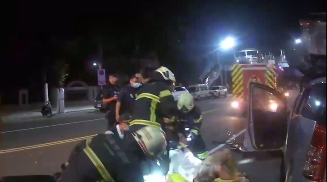 王男受困車內,由員警立即協助將其救出送往高醫救治。(記者翻攝)