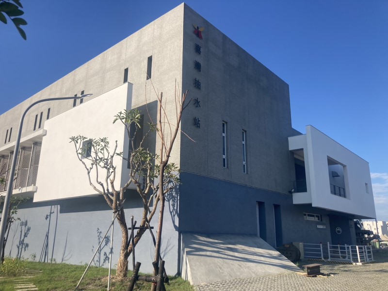 「臺南市學甲區法源排水區抽水站及調節池工程」,有效降低北學甲社區及學甲國中一帶積淹水風險的「秀昌抽水站」。(臺南市政府水利局提供)
