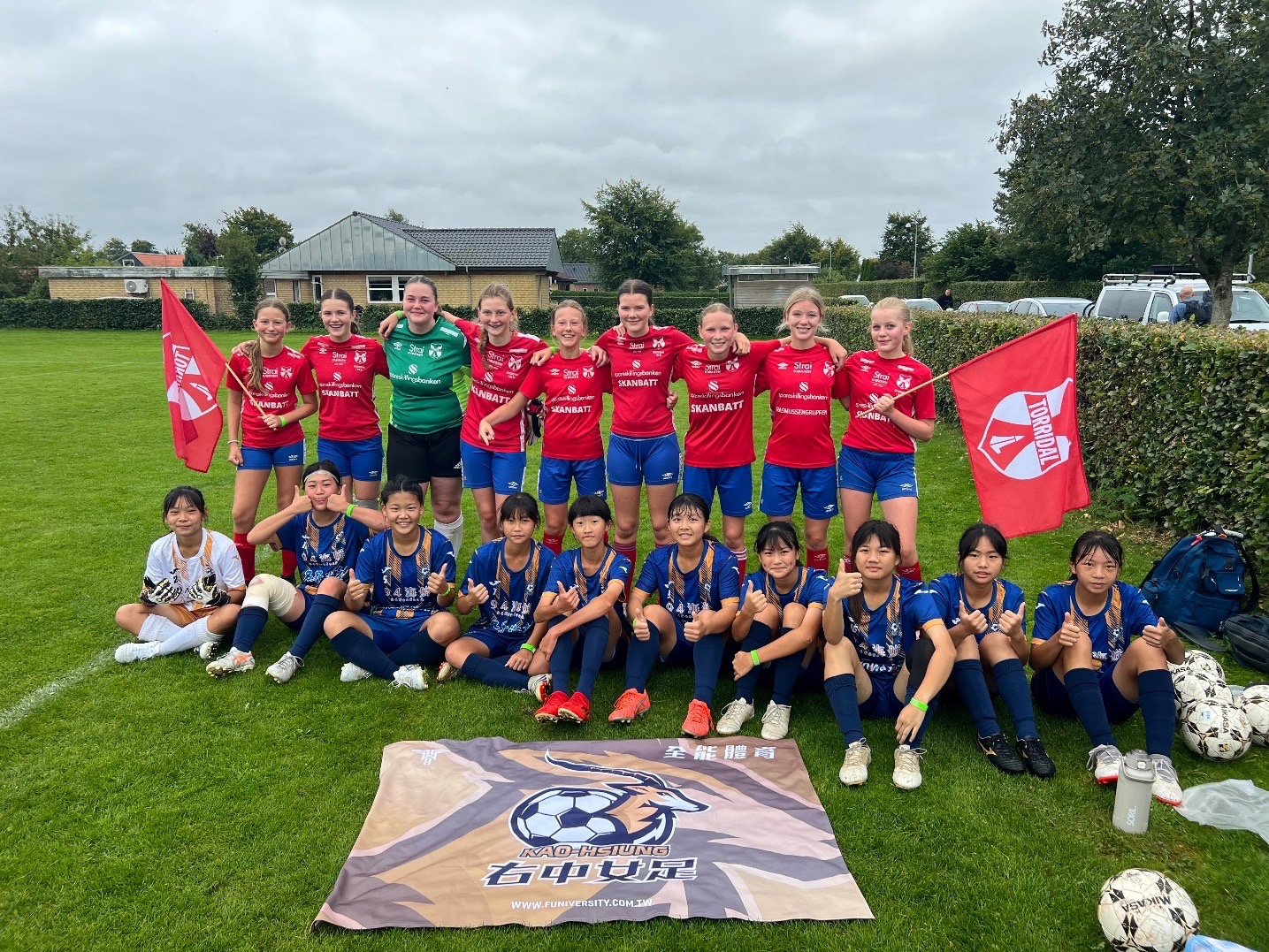 這次選手們到丹麥維爾比約比賽,雖然同組別的U15年齡相近,但是歐洲小選手們還是人高馬大的,學生們在傳球進攻甚或防守時都感受到不同的強度,但這也是一個特別並且可以成長的機會,右昌的選手們見識到歐洲足球的踢球環境與踢球人口以及對足球運動參與的熱情,但是全隊展現了堅韌不拔的戰鬥精神與無懈可擊的技術,在20隊的隊伍中,預賽第一場2:1勝,第二場 2:0 勝,第三場 4:0 勝,第四場 3:0 勝,以分組第一全勝的戰績晉級8強賽,頂著連勝的氣勢在8強淘汰賽中以2:0取得勝利挺進四強。