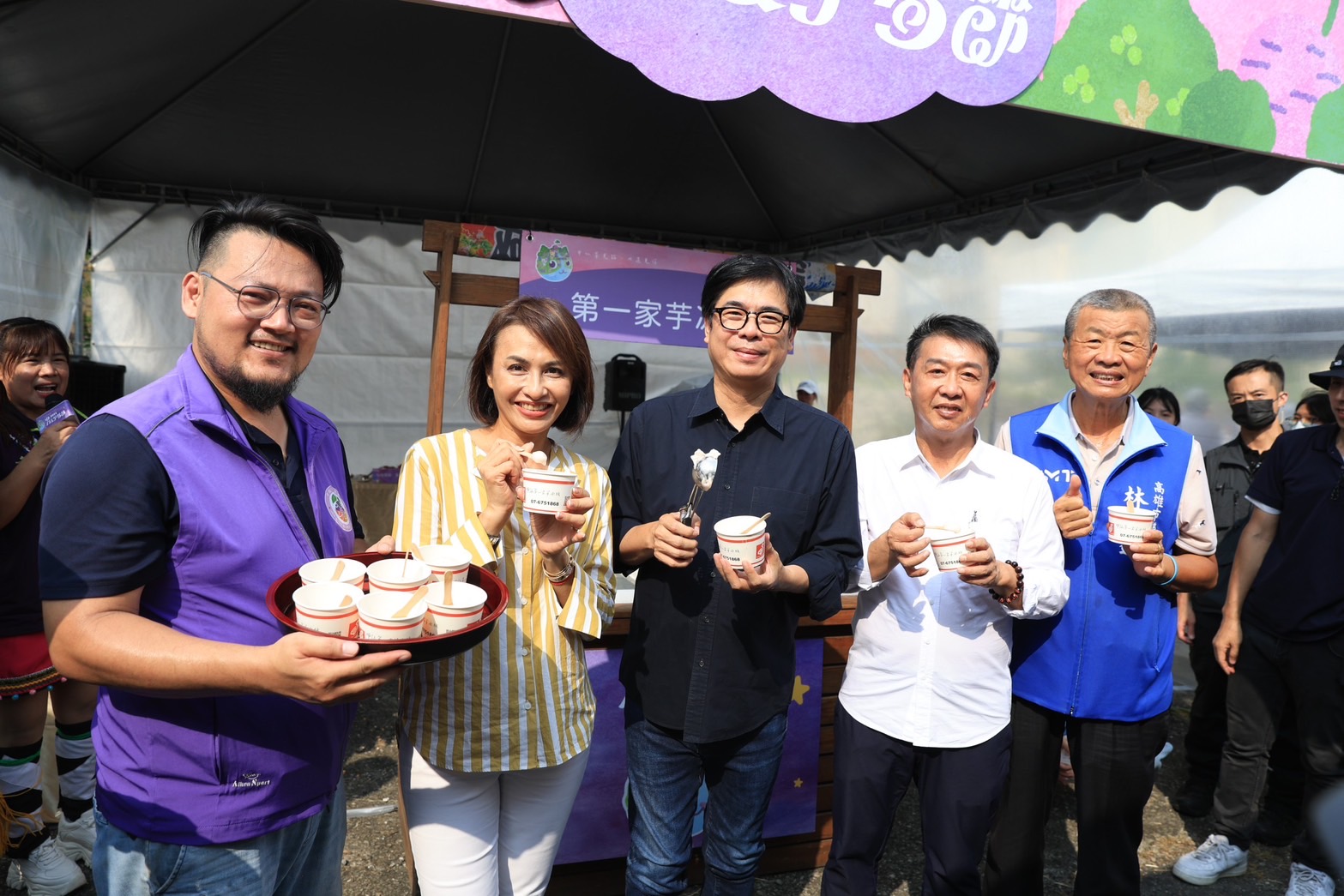活動現場規劃由甲仙特色商家準備共19道在地美食,陳其邁化身第一家芋冰城服務人員,拿起冰勺熟練地挖芋冰,並大口品嚐透心涼的好滋味,試吃菜色還有龍鬚菜麵包、香酥鴨、芋泥蛋糕、貓咪芋捲、芋香排骨、薑黃雞翅、一品封等,都是運用當地食材,結合創意,從產地直接到餐桌,最道地的小農料理。