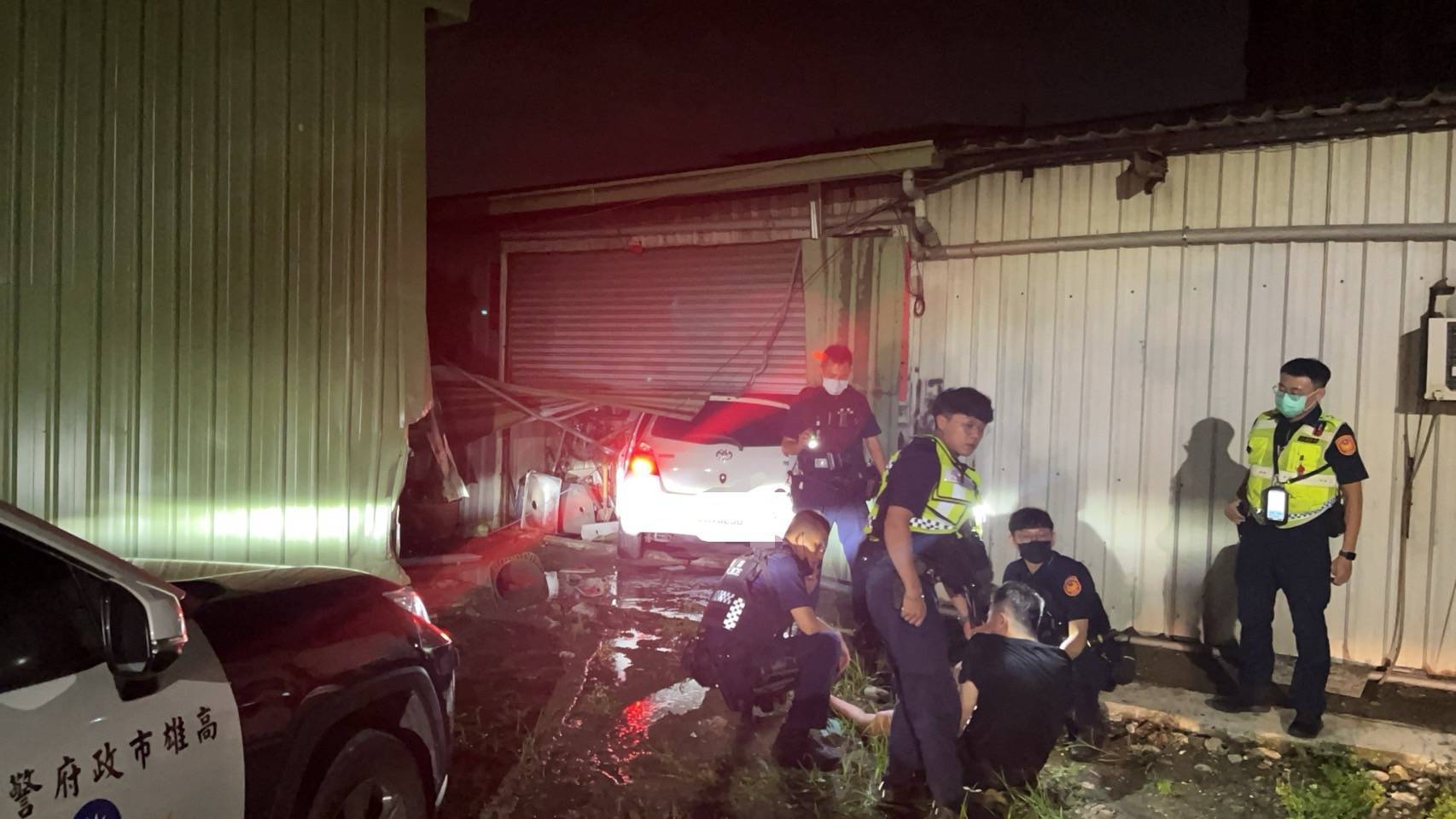 圖說-遇警盤查攔檢竟加速逃逸 失控自撞路旁廠房