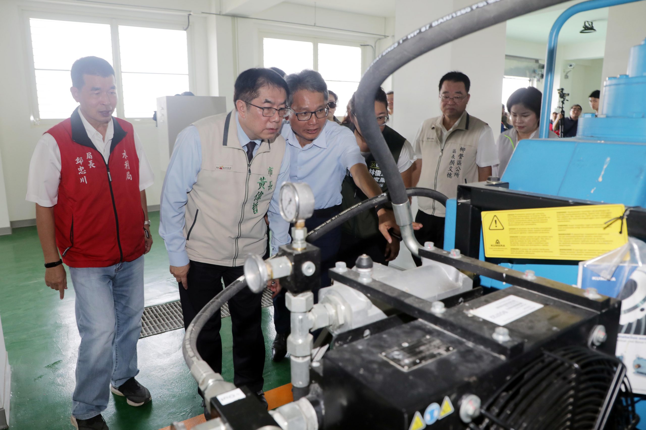 市長黃偉哲及水利署長賴建信視察八老爺抽水站。(臺南市政府水利局提供)