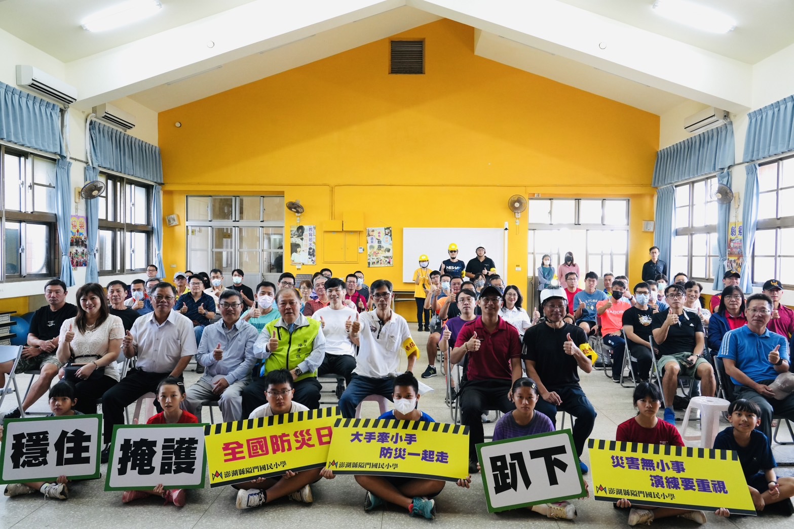 【記者謝富益/澎湖報導】配合9月21日國家防災日,湖西鄉隘門國小於19日辦理「地震避難演練示範觀摩」。澎湖縣長陳光復蒞臨視察師生們的演練情況,對於模擬地震發生時,全體師生依照「趴下、掩護、穩住」三步驟,有條不紊進行避難掩護表示高度肯定,也希望透過演練與教學,將防災意識深植學童心中。