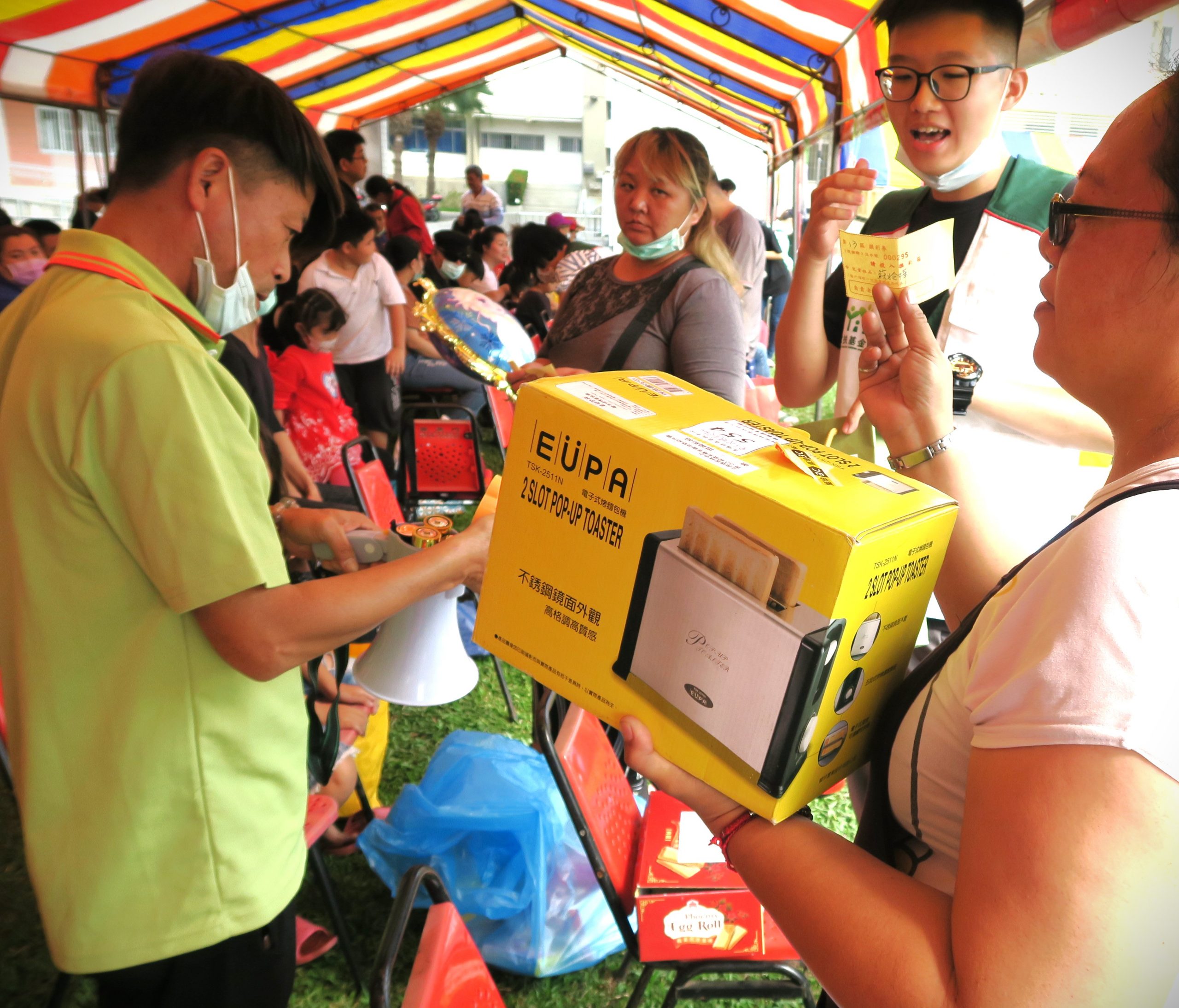 除了在家庭生活空間的實質協助改善外,北高雄家扶今年歲末寒冬暖流慈幼大會也希望能為服務的家庭親子募集生活小家電等日用電器,作為活動中的摸彩品,除帶給與會親子驚喜,也讓家扶所服務之家庭親子的生活更為便利。