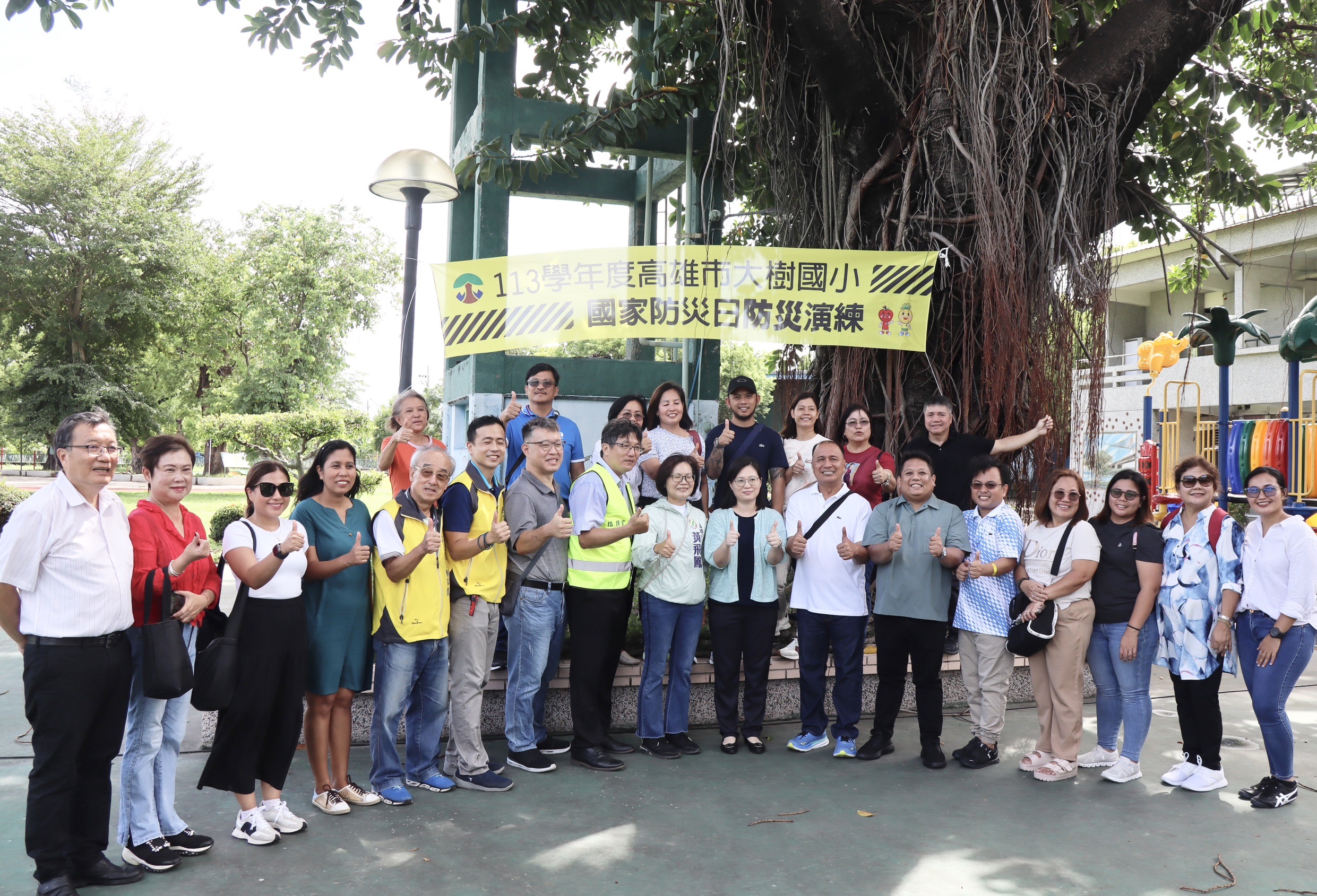 比次高雄市教育局921國家防災日演練大樹國小現場,經國立高雄大學災害防救科技研究中心吳明淏教授引薦,邀請到菲律賓維多利亞市市政考察團至現場觀摩,了解高雄市學校面對地震等災害應變能力,落實地震避難疏散演練,強化防災避險等意識,以作為該市防災演練之參考。