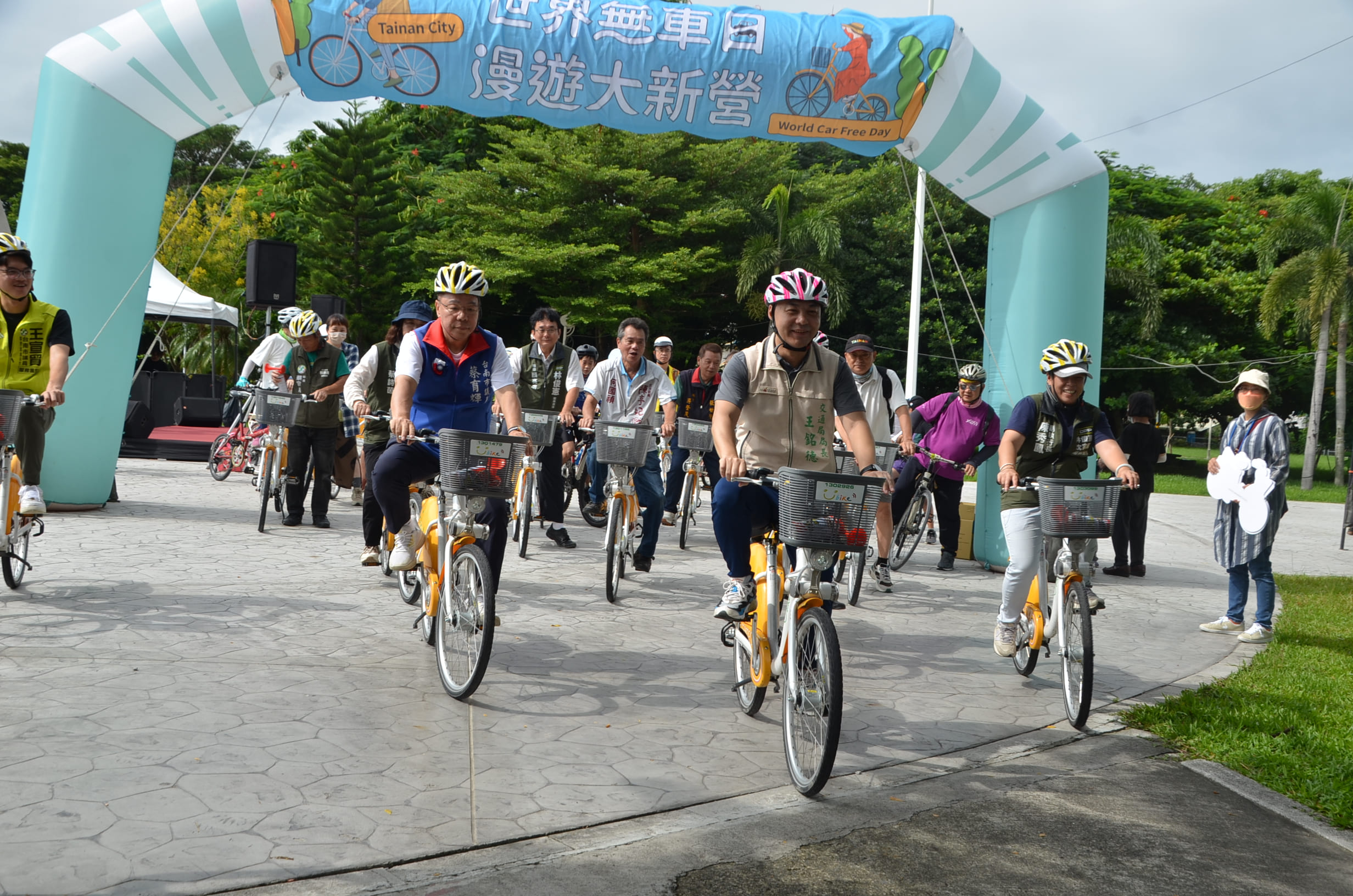 (記者葛志琪台南報導)為響應922世界無車日,臺南市政府交通局今(21)日新營區天鵝湖公園辦理「世界無車日 漫遊大新營」活動,吸引大批民眾熱情參與,騎自行車路沿新營糖鐵自行車道至菁寮老街、及無米樂遊客服務中心,藉此宣導世界無車日活動,交通局表示,台南市公共自行車Youbike2.0租賃系統已完成建置500站點,共投入營運5000輛youbike,歡迎大家搭乘大眾運輸及騎乘公共自行車暢遊大台南地區。
