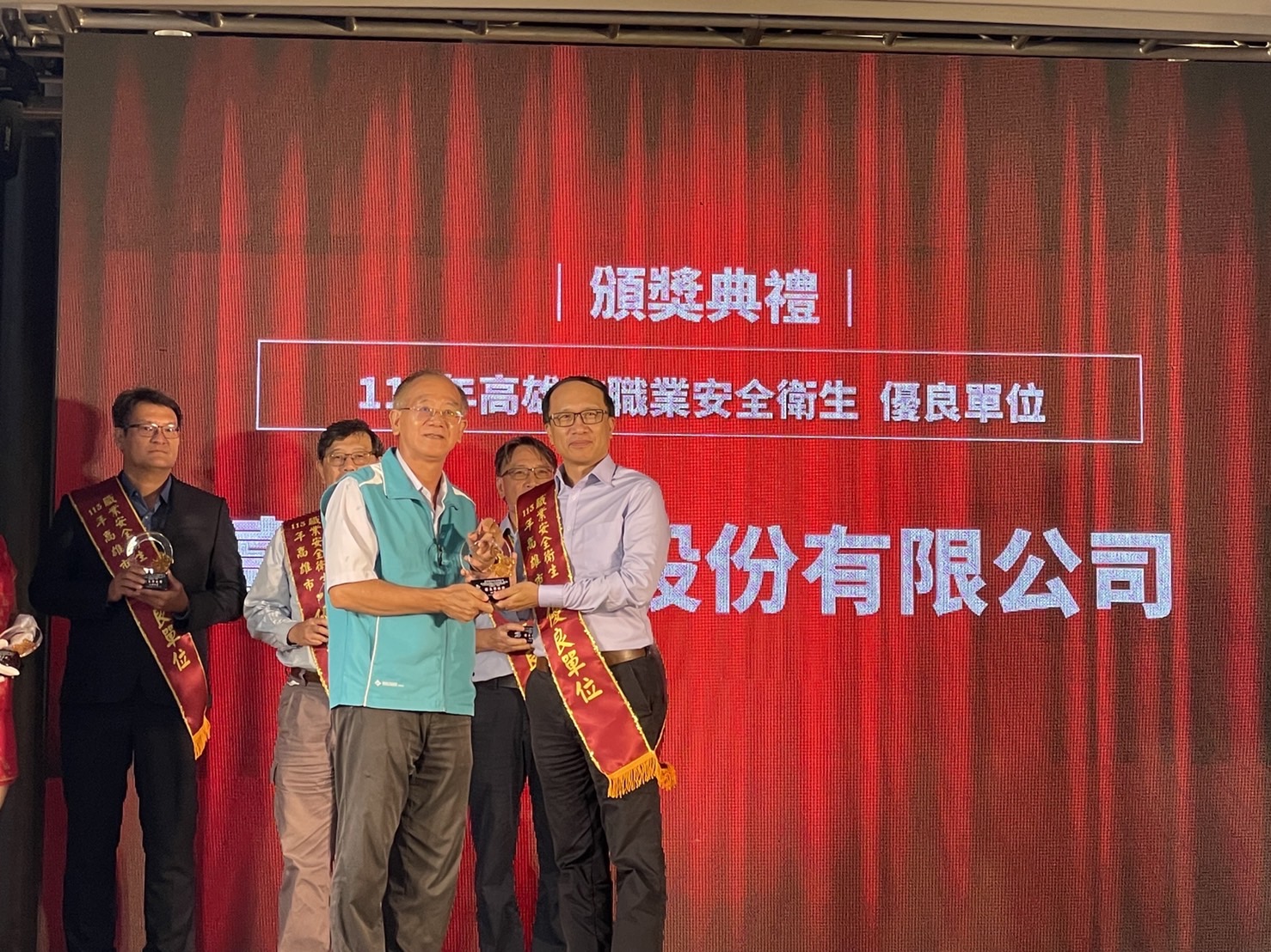高雄市政府舉辦頒獎「113年推行職業安全衛生優良單位」典禮獲獎嘉賓大合照。(記者翻攝)