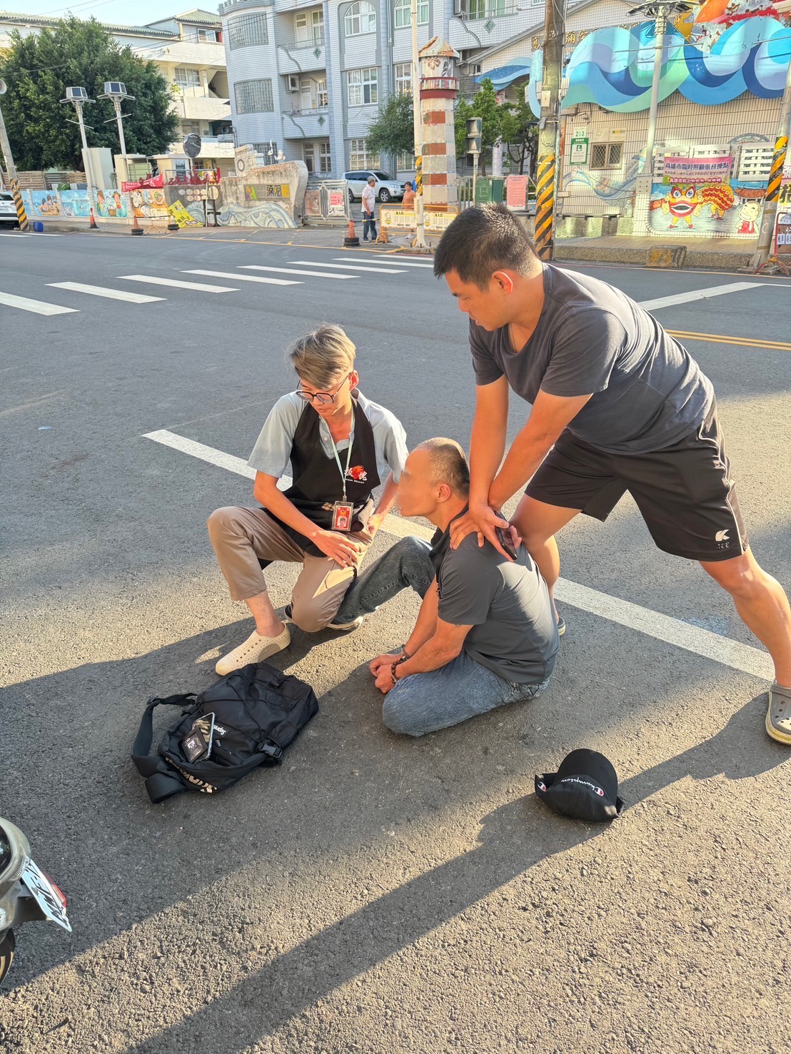 老翁誤信LINE群組投資廣告疑似遭詐騙,警方多日調查,在車手要再次面交款項時,在旁埋伏的員警立即上前盤查。(記者翻攝)