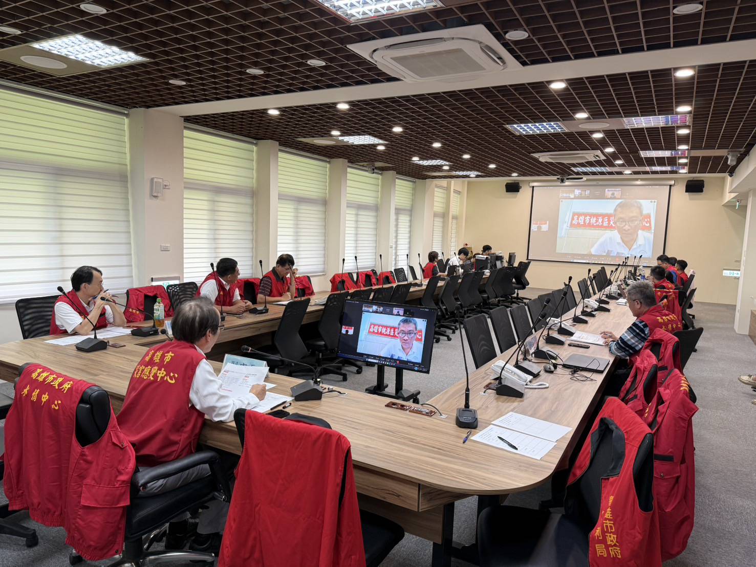 林欽榮副市長於今日一早前往水情中心,並與區公所進行連線,掌握颱風動態及市府防汛應變作為。(記者翻攝)