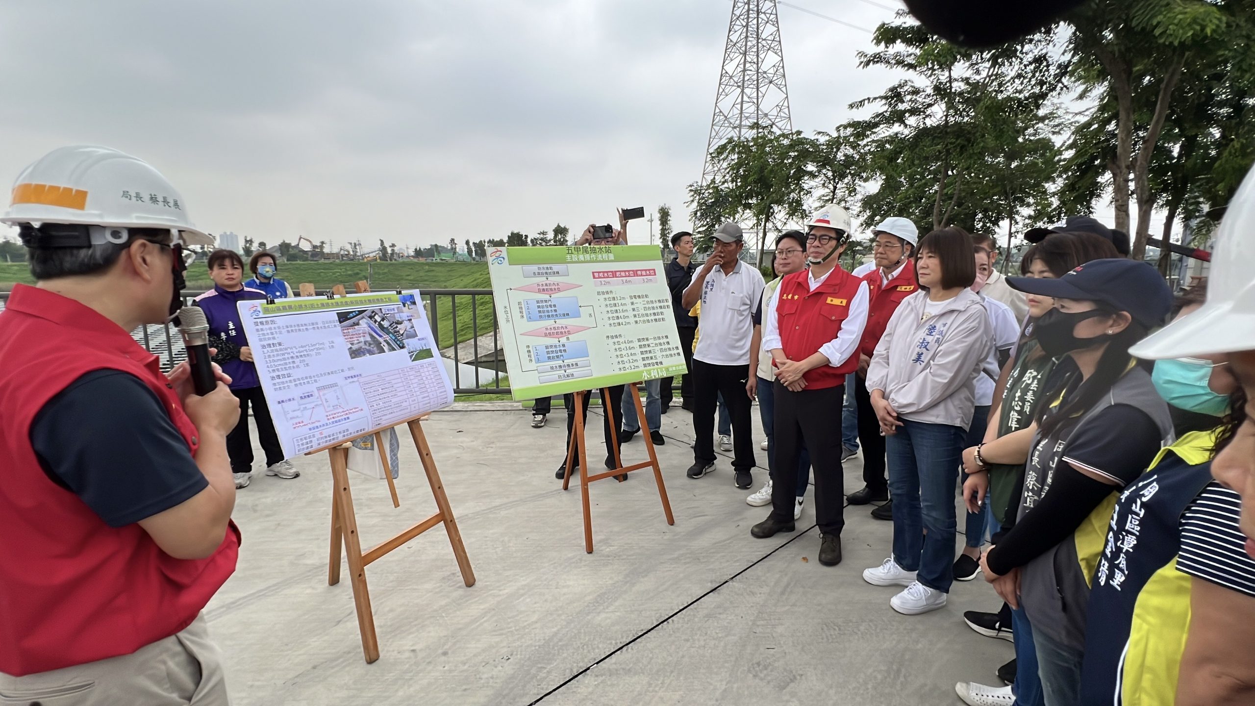 嚴陣以待防範中度颱風山陀兒逼近,市長陳其邁馬不停蹄前往本和里滯洪池、棋琴12重奏、岡山五甲尾滯洪池、潭底小抽水站、仁武八涳橋等地進行防颱視察工作。(記者翻攝)