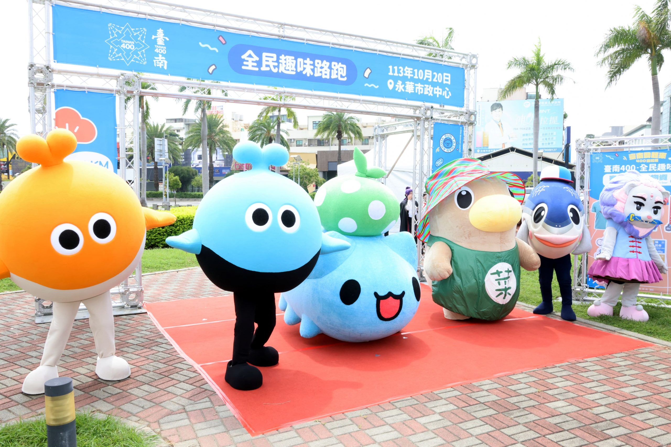 (記者林韋呈台南報導)臺南400「臺南動起來,400咖拉棒!」,10月20日將於永華市政中心舉行全民趣味路跑!今(30)日在永華市政中心戶外綠園舉行宣傳記者會,現場由市長黃偉哲、體育局長陳良乾為活動站台,本次活動的代言人—臺灣在地百萬人氣原創角色「貓貓蟲咖波」也聯袂登場,現場歡欣手舞足蹈,活力十足,還邀請統一獅隊Uni Girls成員瑟七、觀旅局吉祥物魚頭君、市場吉祥物菜奇鴨、安平的劍獅寶寶安安和114年臺南全中運吉祥物大員、甜甜等人物共襄盛舉,現場熱鬧非凡,熱情邀請全國民眾一起來臺南參與趣味路跑盛事。