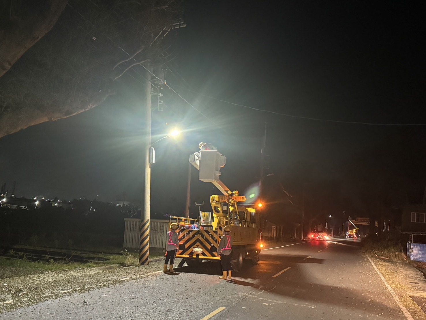有關林園區整排電桿及電線遭路樹壓倒搶修工作,台電鳳山區處施工班計有4班24位同仁不分日夜加緊斷桿修復,因斷桿斷線與倒臥的路樹交纏,需以人工先移除舊桿及路樹才可重新建桿,需耗費較多時間。高雄市長陳其邁本(5)日親臨主幹線搶修現場視察關心復電進度,並感謝台電人員辛勞讓居民有電可用!台電曾文生董事長及陳銘樹副總經理更連2日持續至災情嚴重區域了解災後復原情形,其中該區里長更表達對台電感謝。