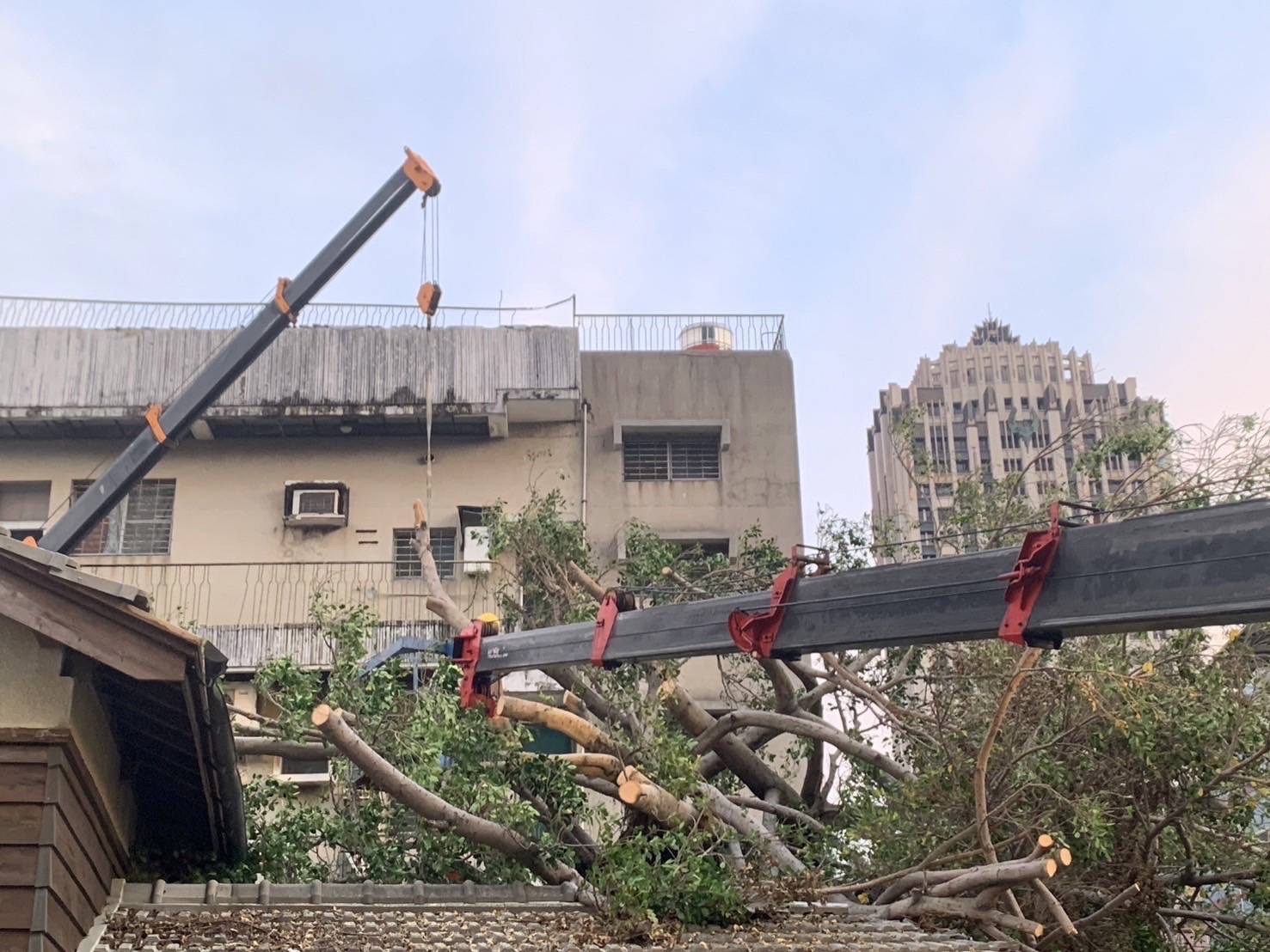 康議長向陳市長請命,請市府全力搶救老樹,市長下令「救救看」。康裕成議長這幾天也不斷地與市府各局處及台鐵公司會勘及開會研究工法,今日更緊急邀請工務局長及農業局長啟動搶救老樹行動,隨即在下午四點相關人員已進駐三塊厝車站進行榕樹修剪工作,並由屏東科技大學森林系陳建璋教授現場指導枝葉和根系修剪、樹穴挖掘,以及扶正方式。今天進度先完成修剪,今(10)日再與台電的線路調整做樹穴整理挖掘、扶正。