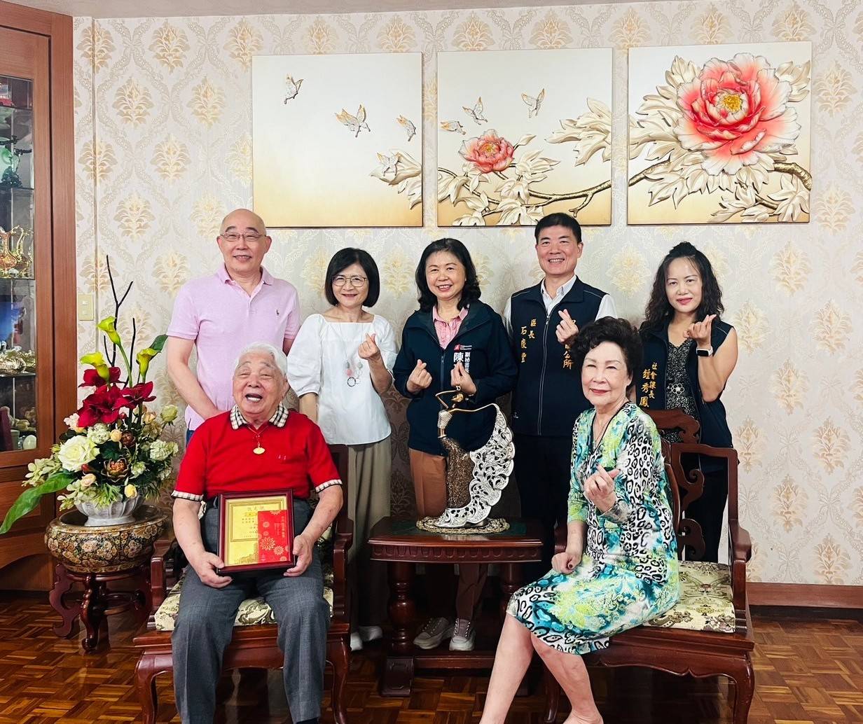【記者吳冠賢/高雄報導】今天是重陽節,恰逢高雄市議會市政質詢,市府由陳副秘書長代表市長慰訪2位今年剛滿百歲的人瑞爺爺。分別為鳳山區的嚴超爺爺及三民區的蔡東源爺爺。並代表衛生福利部致贈金鎖片、總統府敬老狀,及致贈高雄市一萬元重陽禮金,祝福爺爺幸福安康。