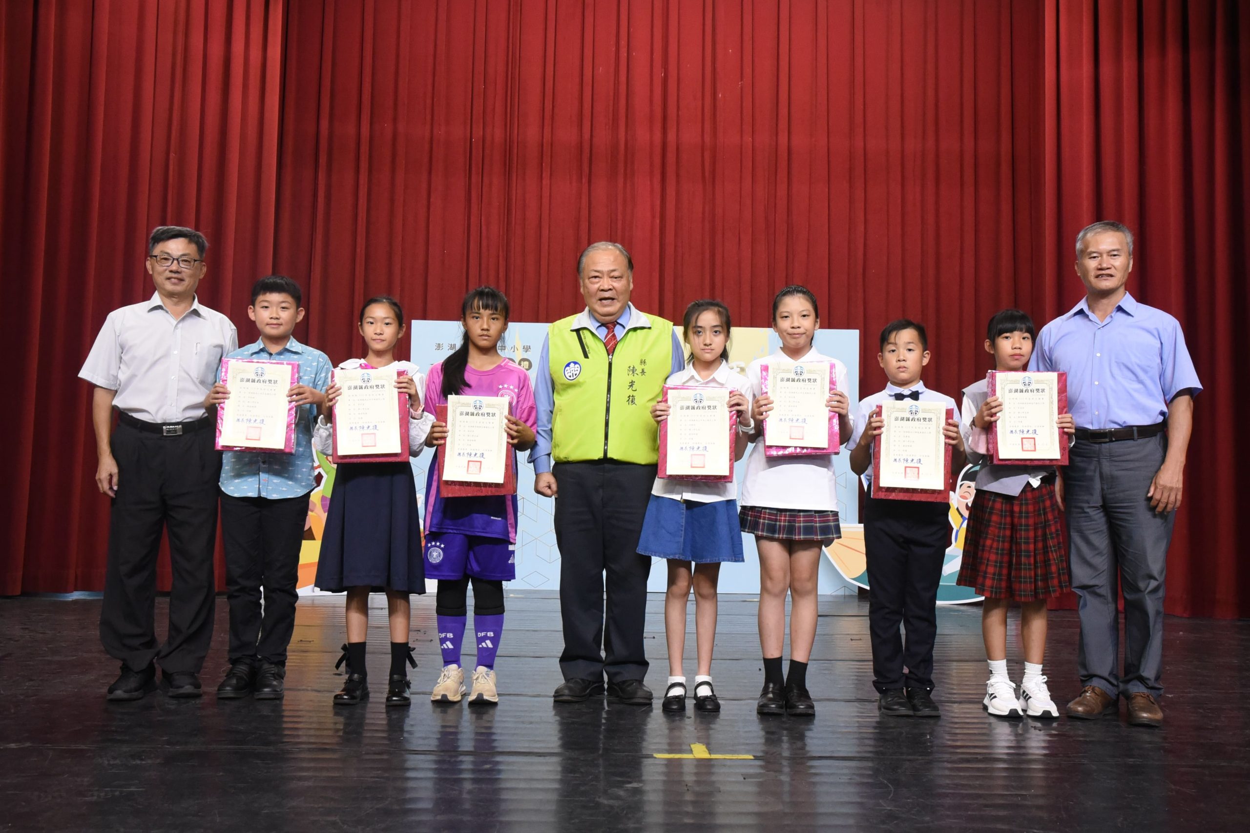 作文:中屯國小廖羽謙(國小組)、中正國中林俐妍(國中組)、馬公高中王宇彤(高中組)、合橫國小許毓恩(教師組)、文澳國小高銘淇(社會組);寫字:後寮國小鄭祐恩(國小組)、馬公國中黃群皓(國中組)、馬公高中謝沅寬(高中組)、中山國小蔡秉憲(教師組);國語朗讀:石泉國小邱柏翔(國小組)、中正國中林芸儀(國中組)、馬公高中張璿(高中組)、講美國小歐奕廷(教師組)、興仁國小羅語茜(社會組);本土語讀者劇場:國小組:文光國小陳宇龍、陳繹安、陳和彥、陳珮妤、呂沛霓、蔡宛芸、楊多殷。