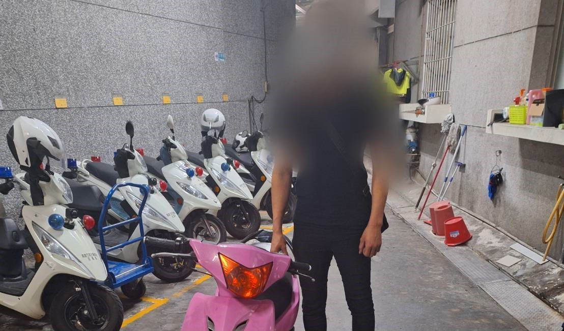 警方查扣競速粉紅色機車一輛。(高雄市湖內警分局提供)
