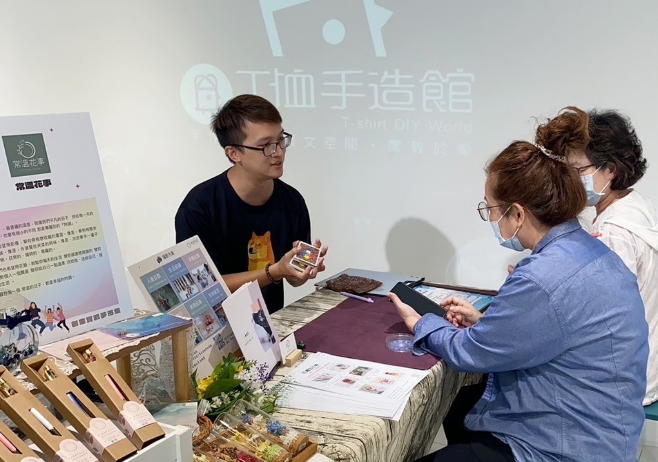 此次參與快閃活動的創新創業品牌包括:「常溫花事」提供個性化的花藝與攝影服務,專注於將花藝美學與生活結合,為日常增添一抹亮色。「吉祥物工作室」提供水晶原礦、奧剛環氧樹脂作品、捕夢網及占卜諮詢等多元服務,用水晶的光療癒身心靈。「一糰人 Nian² Group®」專注於研發MIT植萃洗浴旅行組,希望消費者旅行同時也能安心洗浴,享受植萃的沐浴饗宴。「J.K.U晶凱優」推出無毒無刺鼻味的水性指甲油,滿足孩子愛美的天性,營造安全又有趣的美甲體驗。「密石特查理」以多樣的水晶加工、金屬編織飾品,為生活注入小魔法,讓每個角落都充滿正能量。
