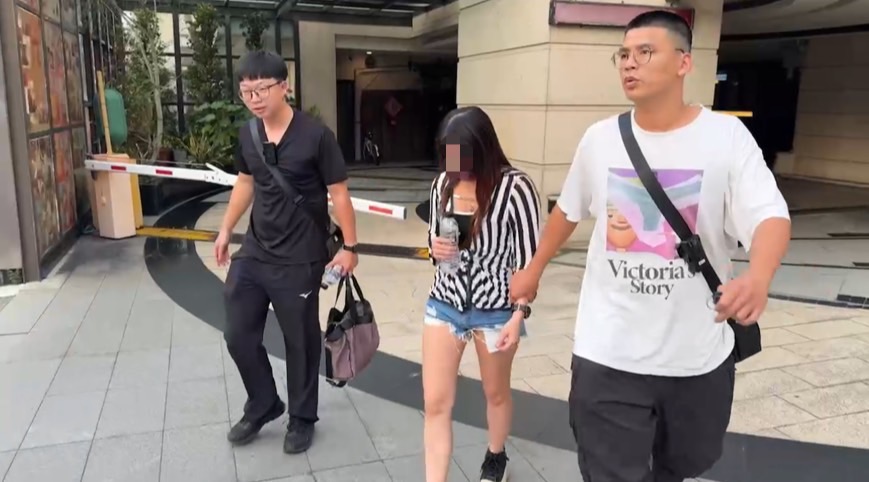 員警於汽車旅館外守候埋伏,果然發現一輛計程車搭載女子前來,女子在汽車旅館外下車後即走入汽車旅館。(記者翻攝)