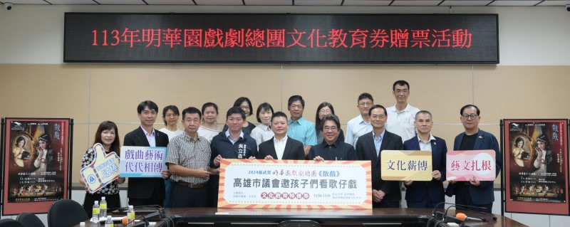 【記者蘇武智/高雄報導】「傳統戲曲從校園扎根」,議長康裕成及副議長曾俊傑共同促成玉皇宮贊助396張文化教育券,提供11所高中職396位師生到衛武營國家藝術文化中心欣賞明華園的精彩好戲。