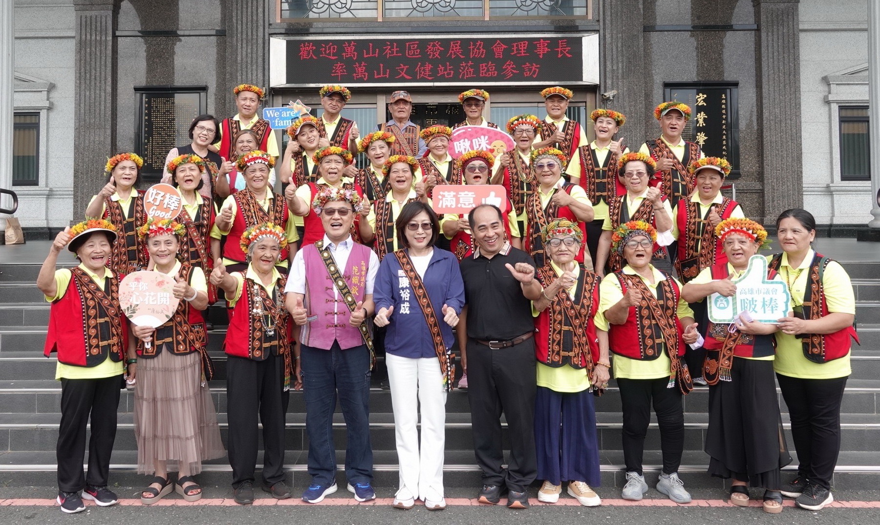 【記者蘇武智/高雄報導】原鄉天籟之音在議會響起,茂林區萬山社區發展協會及萬山文建站今(25)日到議會參訪;議長康裕成親自接待遠道而來的部落耆老長輩,他們更以原鄉部落美妙歌聲向康議長表達感謝,歡樂氣氛感染嚴肅的議會。