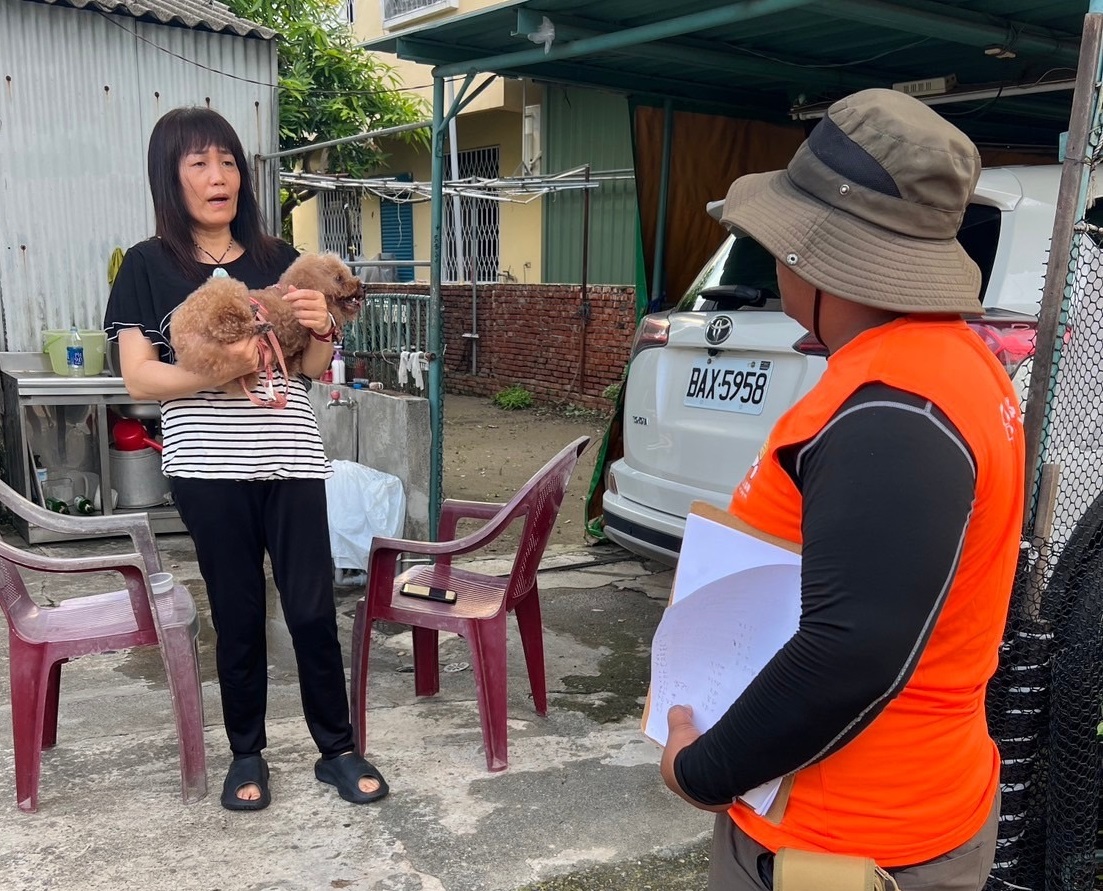 結合民間團體對飼主家訪宣導。(高雄市政府動保處提供)