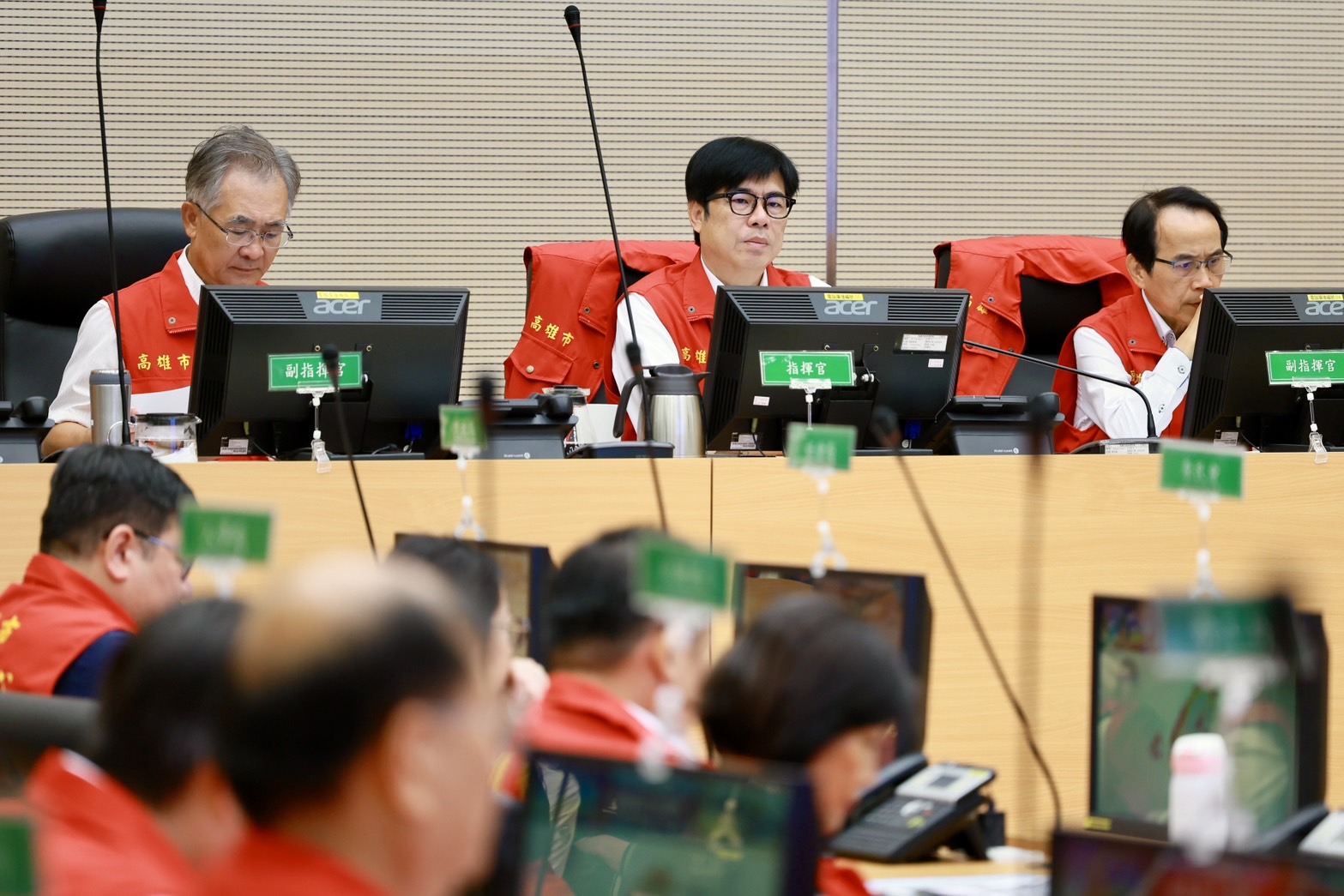 針對河川警戒區及沿海低窪易淹水地區,陳其邁強調,務必確保排水防洪設施正常運作,並依實際降雨情形,彈性機動調度抽水機具。同時指示消防局、警察局、民政局加強災情查通報作業,如有相關災情亦可請民眾透過1999進行通報;並請各局處及區公所掌握災害應變作為,在確保救災人員自身安全的狀況下,即時因應救援。