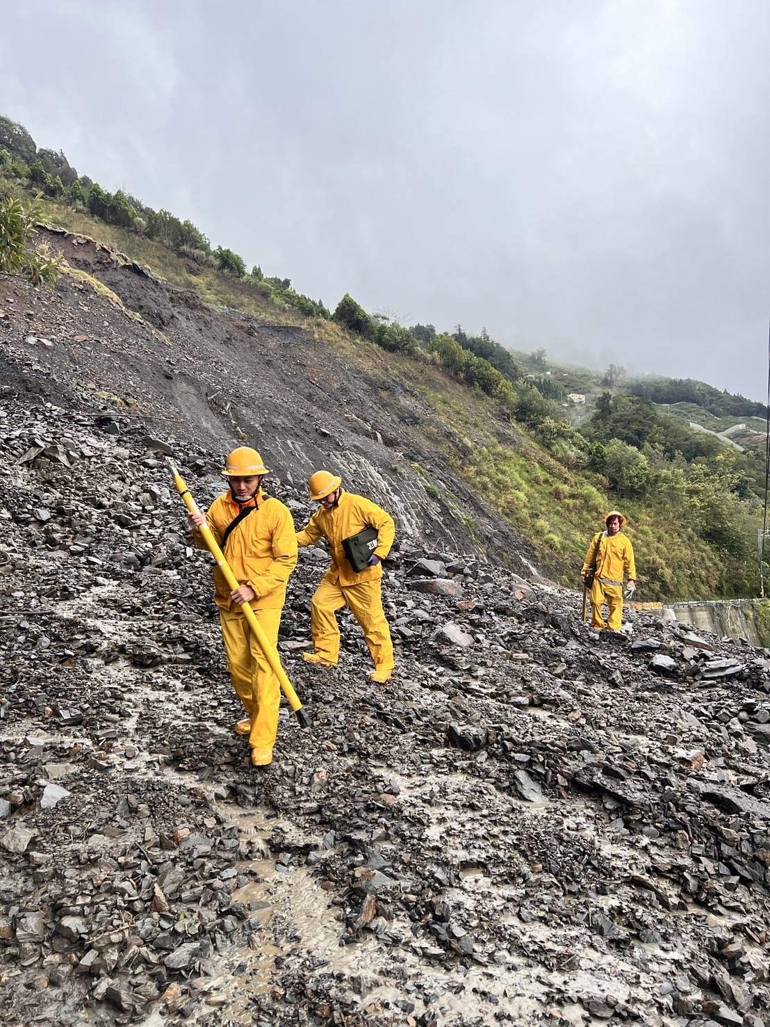 台電屏東區處同仁支援至新北市深坑區進行搶修。(記者翻攝)